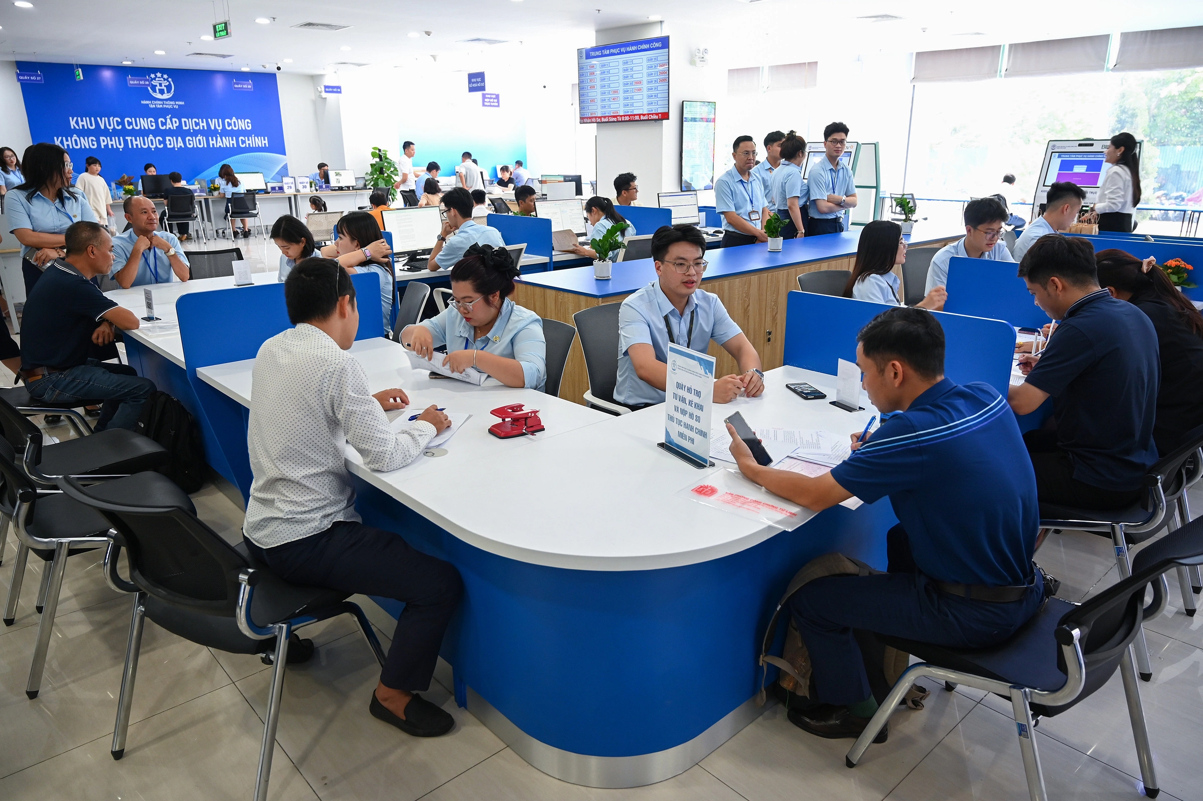 Citizens completing administrative procedures at the Ha Noi Public Administration Service Center. *Photo: Giang Huy* |