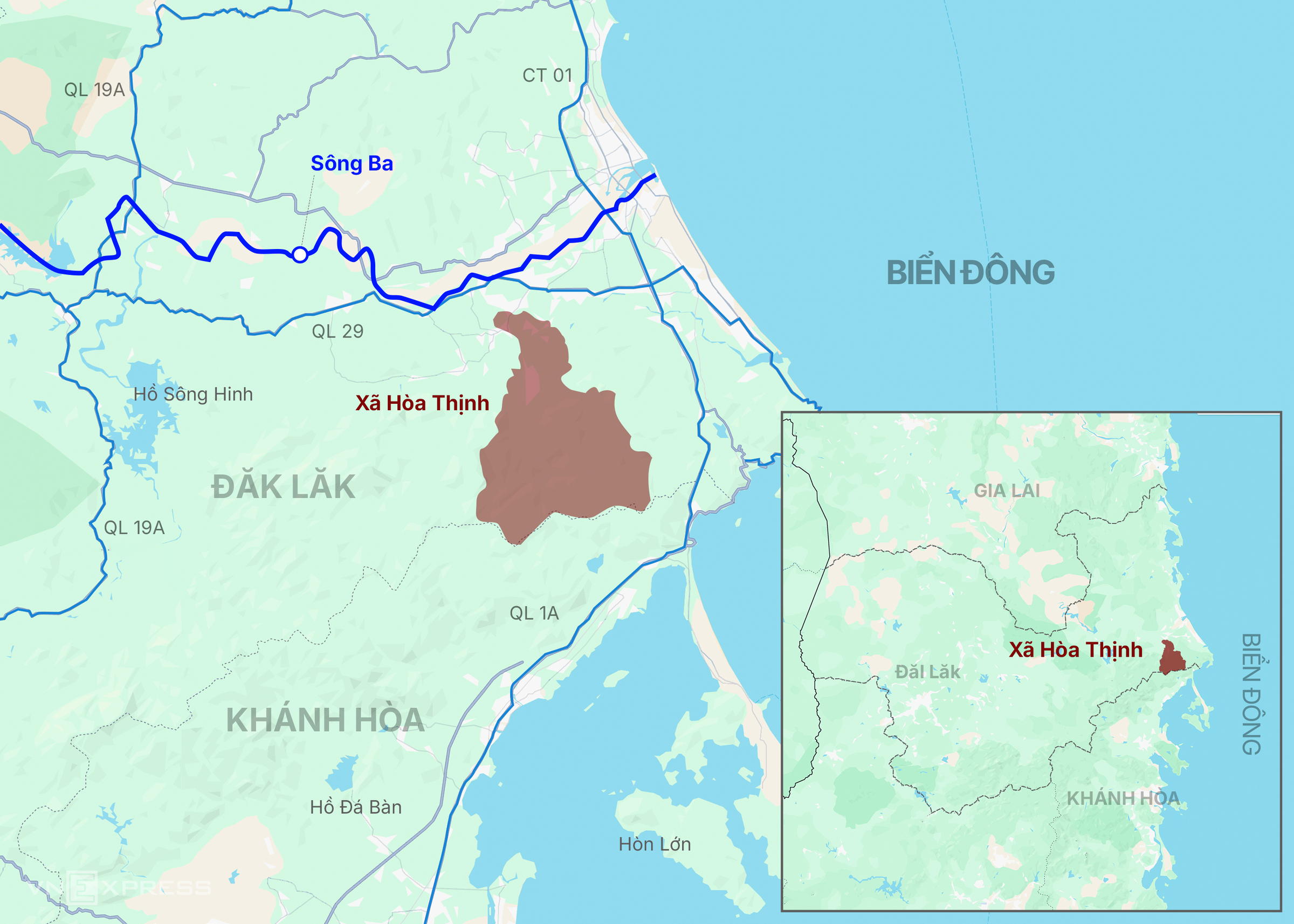 Hoa Thinh commune is located downstream of the Ba River basin before it flows into the sea. Graphic: Hoang Thanh |