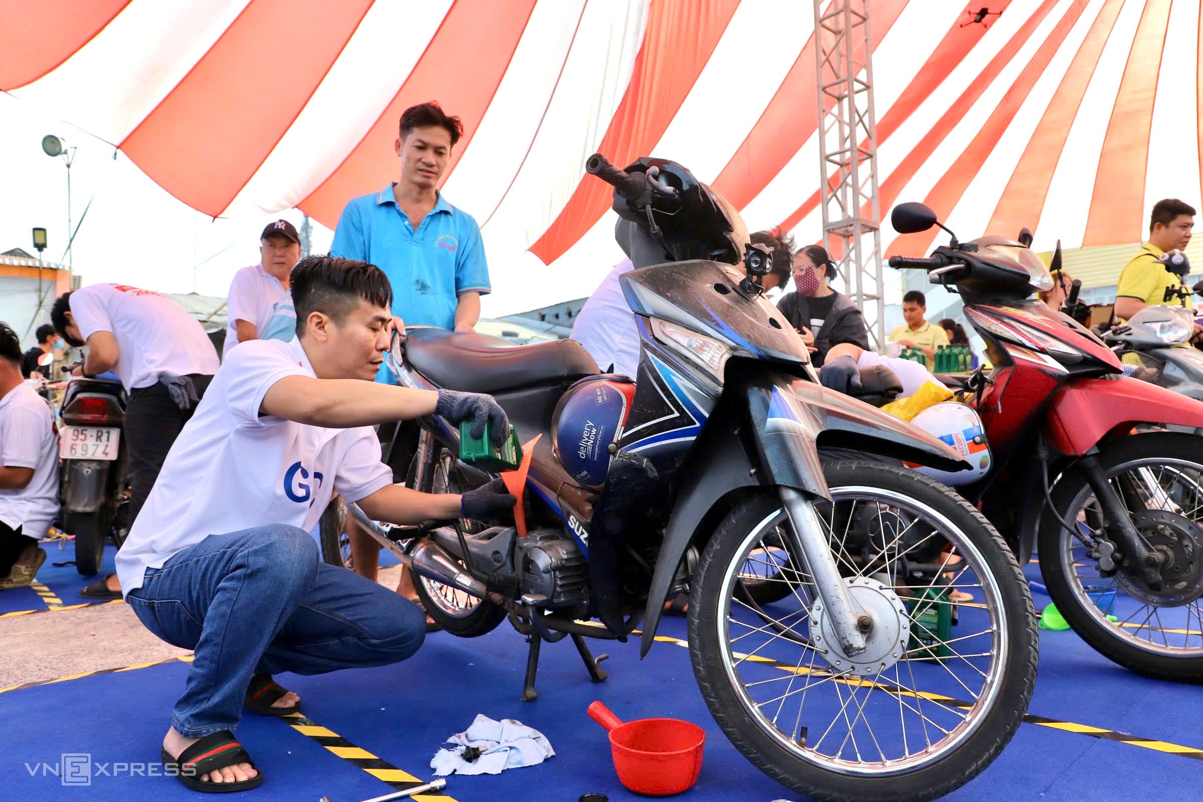 "The motorbike was almost out of oil; driving it further could damage the engine," Tam remarked as he watched a mechanic drain the old oil from his Suzuki scooter. Living close to his workplace, he admitted to being complacent, rarely checking his vehicle. Last week, after receiving a free inspection voucher, he promptly brought his trusty steed for maintenance this morning, preparing for his drive to Soc Trang next weekend.