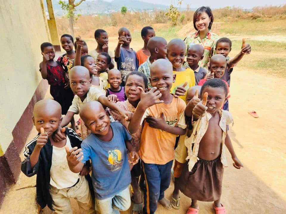 Lieutenant colonel Vu Thi Lien takes a photo with children in Central Africa. Photo: Supplied |