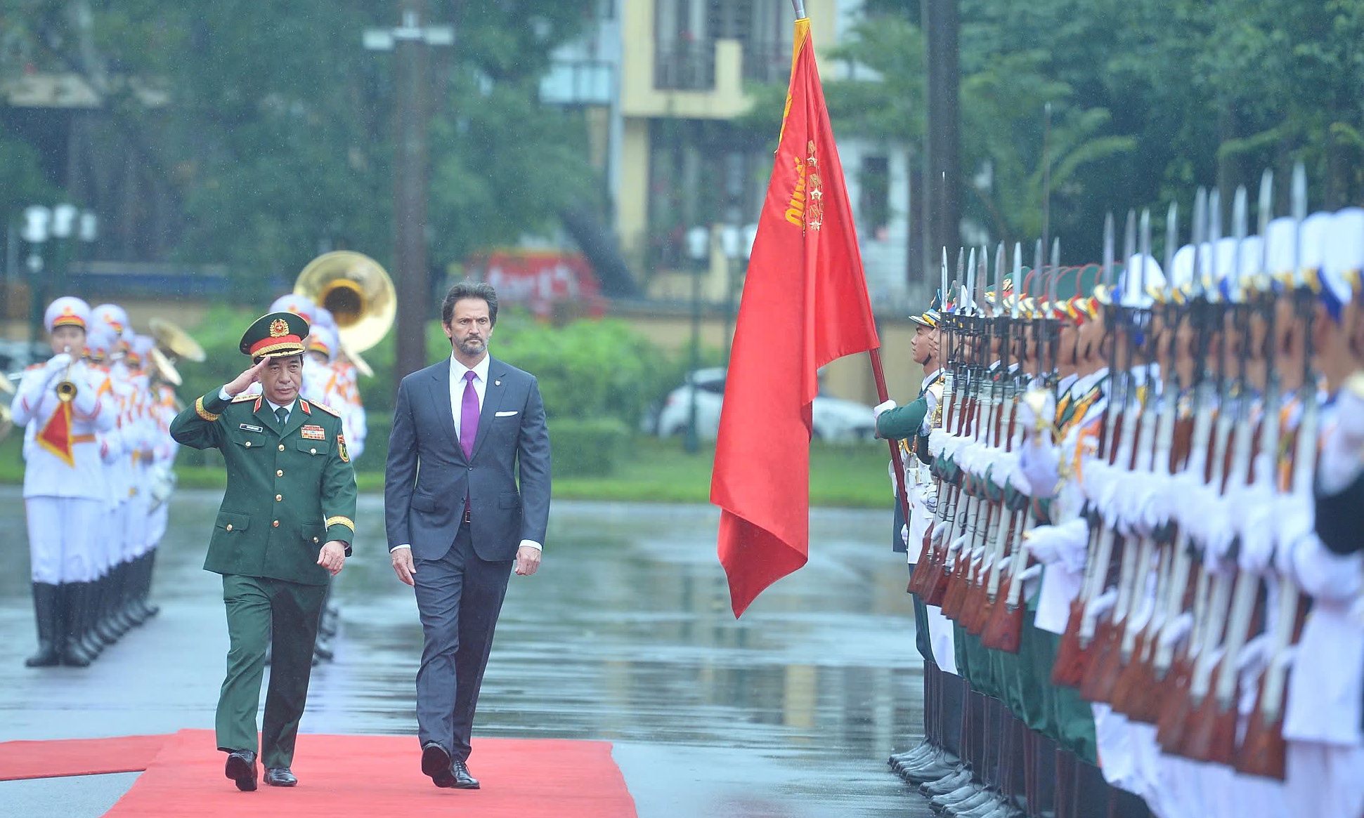 General Phan Van Giang, Minister of National Defense, hosted a reception for Slovakia's Deputy Prime Minister and Minister of Defense Robert Kalinak. *Hoang Phong* |