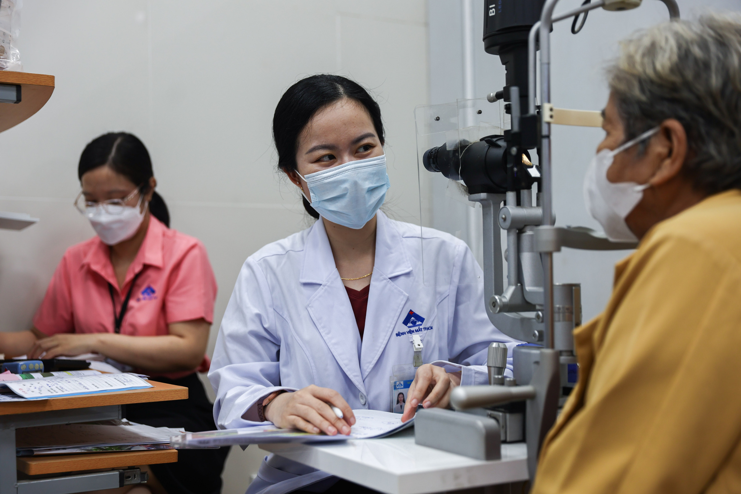 Doctors and medical staff at a Ho Chi Minh City eye hospital examine patients, July 2025. Photo: Quynh Tran