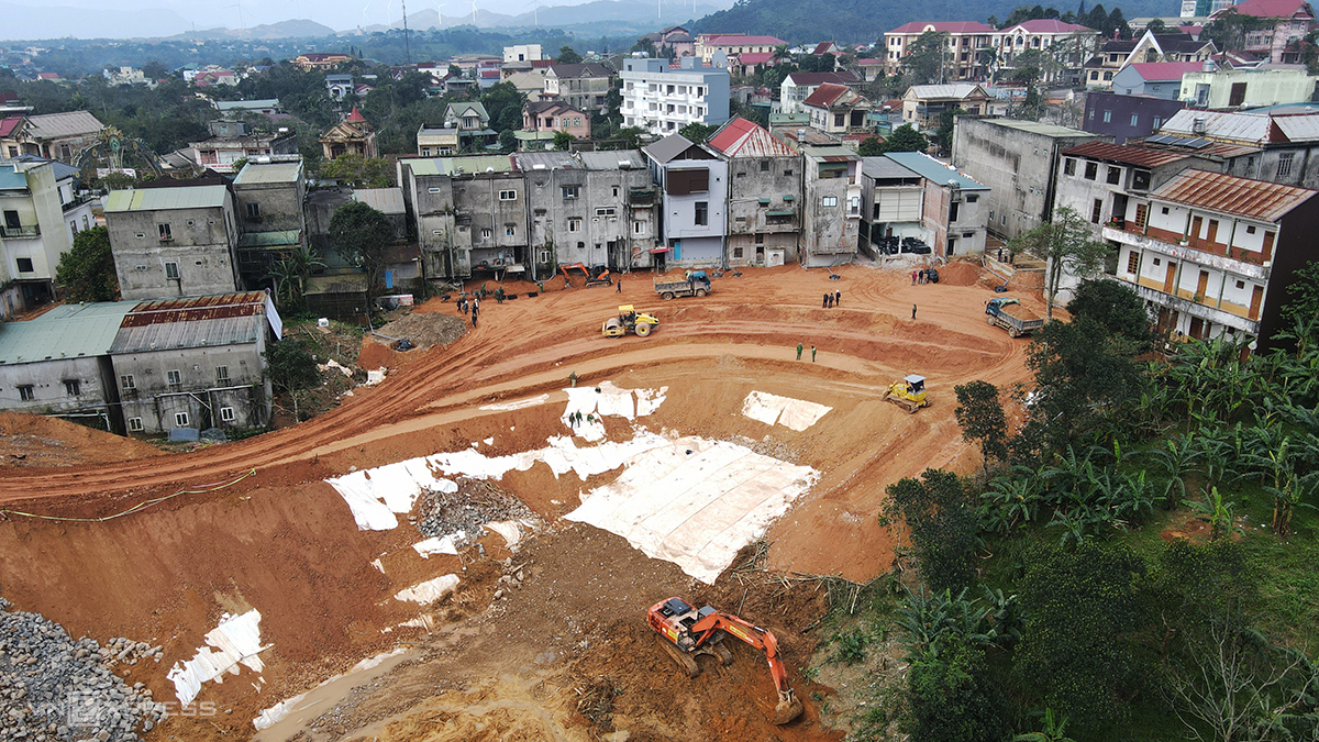 Previously, on 16-17/11, unusually heavy rainfall caused a severe landslide on the stream slope behind the Hung Vuong street residential area. The landslide measured approximately 170 m long, 30 m wide, and 15 m deep, destroying over 5,000 m2 of land. The incident damaged the rear sections of two houses and threatened the safety of 10 others, forcing 12 households, comprising 47 people, to evacuate immediately.