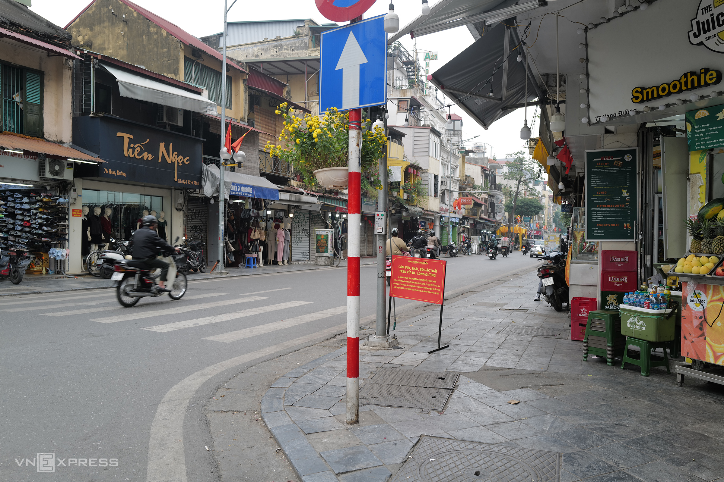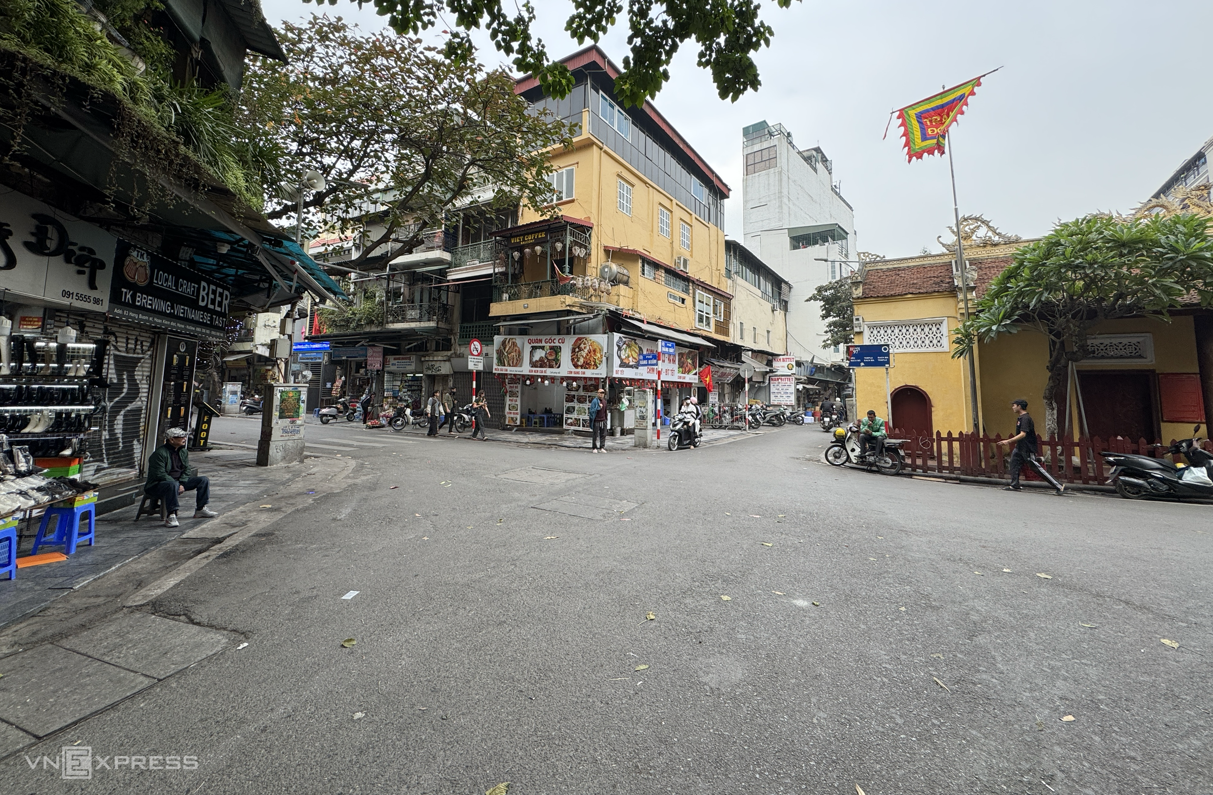 The intersection of Hang Giay and Hang Buom was once packed with eateries and stalls spilling onto sidewalks and roadways, causing traffic jams. Now, the street is clear, allowing residents and tourists to stroll leisurely without dodging vehicles or blaring horns. |