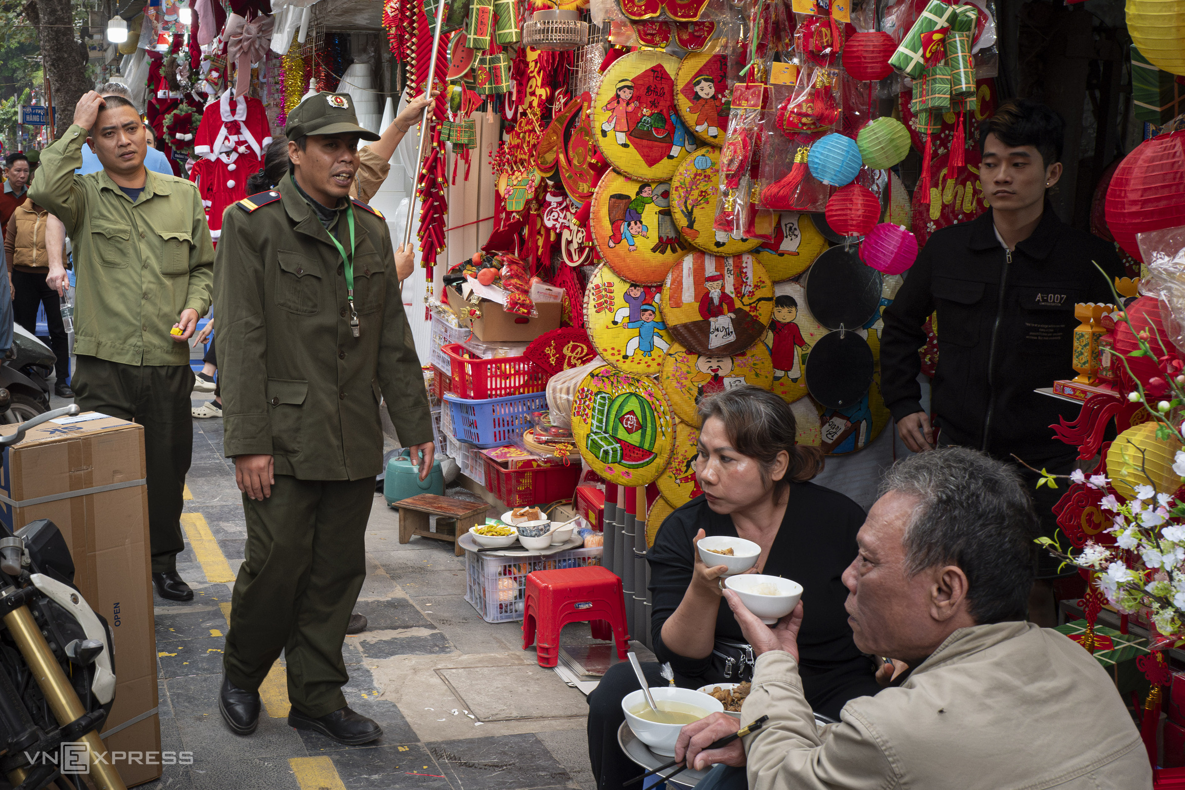 The intersection of Hang Ruoi and Hang Ma, a bustling commercial hub, particularly vibrant during the year-end season with numerous food stalls, often attracted large crowds. Previously, encroaching sidewalks and vehicles overflowing into the roadway caused constant congestion throughout the day.