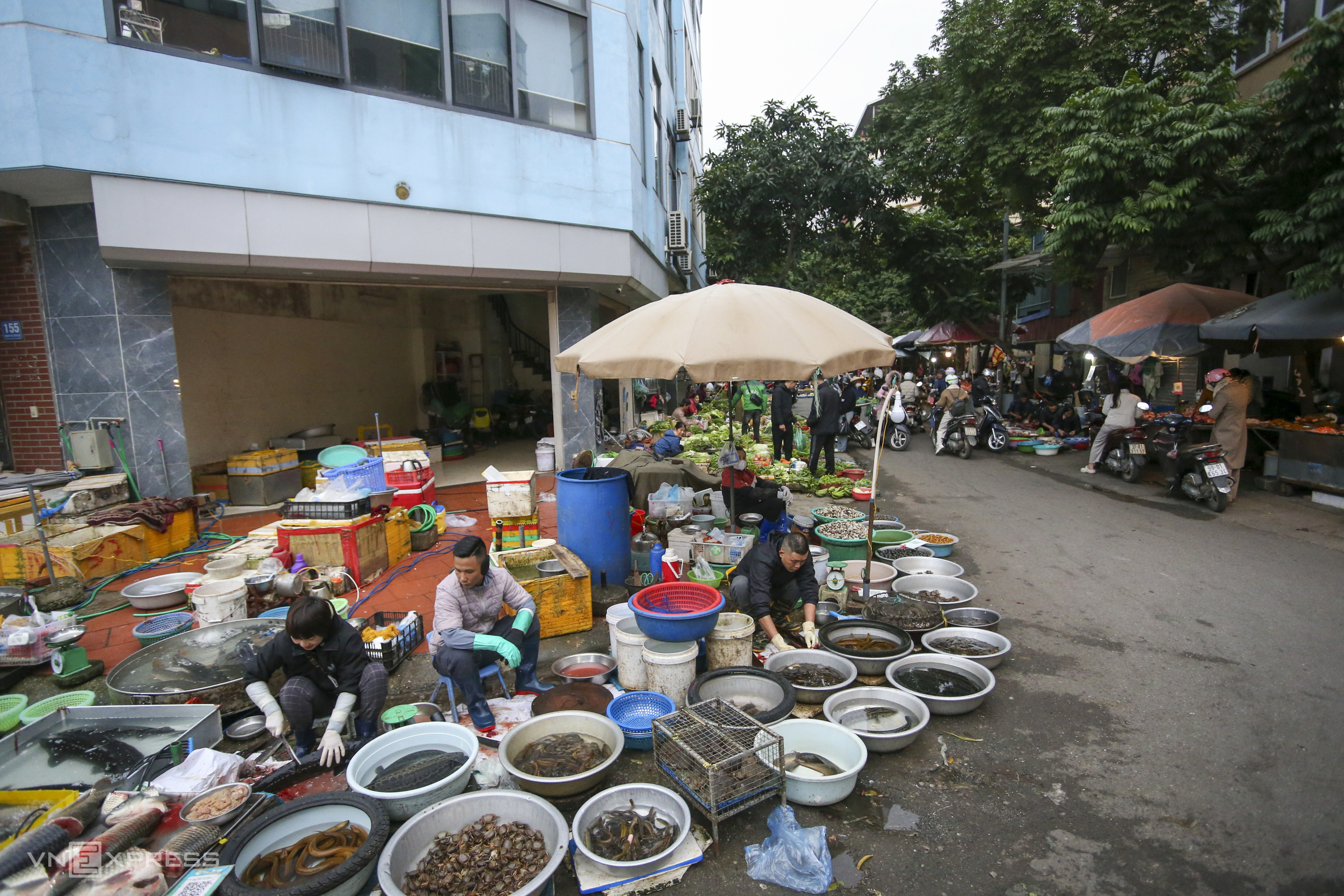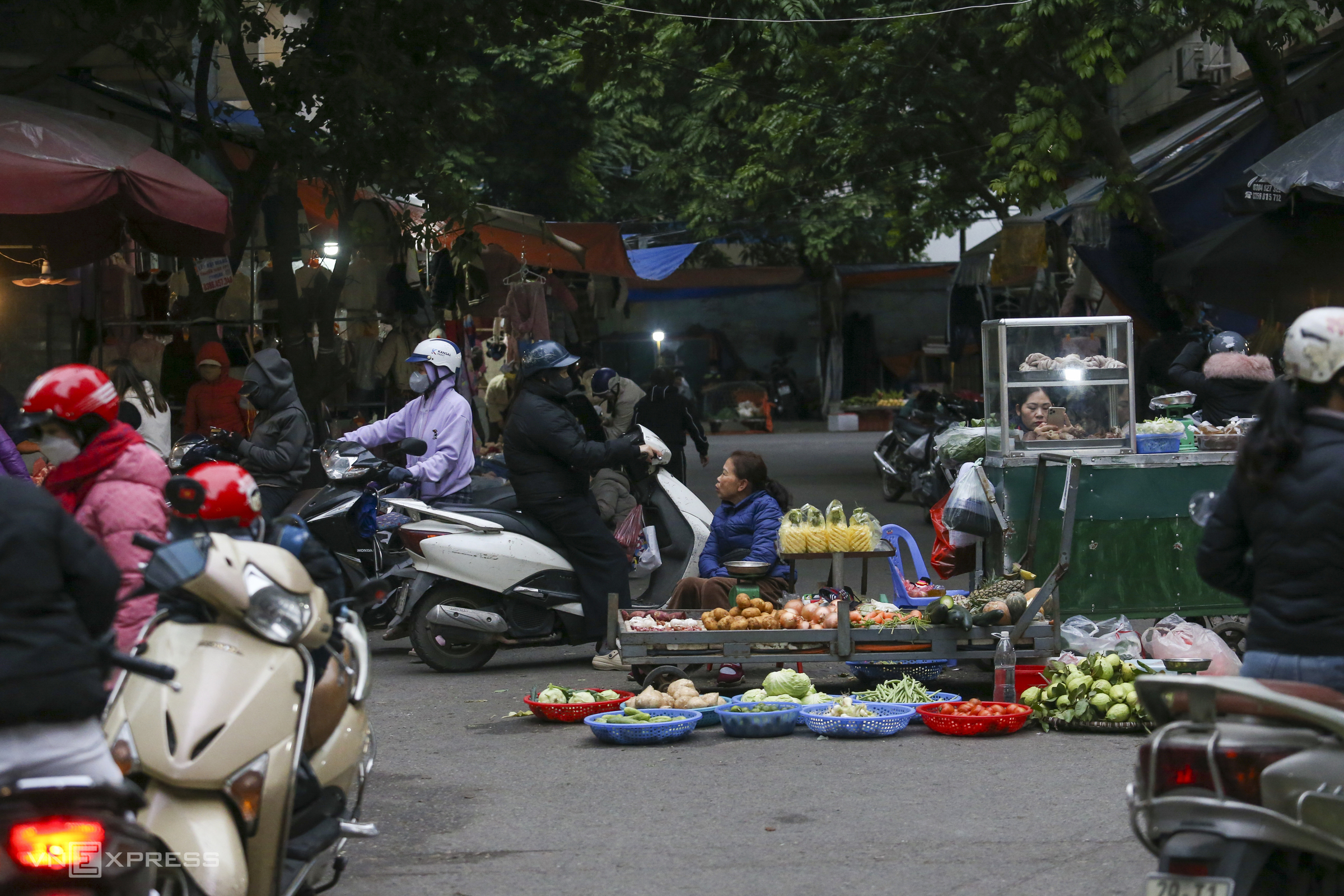 About 4 km away, on the sidewalk of Xa La service land in Ha Dong ward, approximately 100 households also gather to trade at a spontaneous informal market. This market usually convenes in the morning and is particularly busy on weekends.