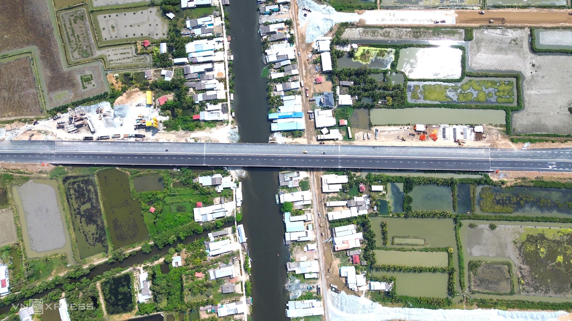 The Hau Giang - Ca Mau expressway section passing through Huyen Su canal, Tri Phai commune, Ca Mau province. Photo: Chuc Ly |