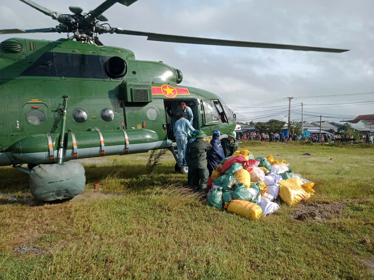 Relief efforts are underway in Dak Lak province, where helicopters are transporting essential supplies to areas isolated by severe flooding. On 23/11 morning, a Mi-17 helicopter from Regiment 930, Division 372, based at Phu Cat airport in Gia Lai, took off with 1,5 tons of food and necessities. These supplies, including dry rations, cakes, milk, drinking water, and life jackets, were destined for residents in the flood-isolated areas of Tuy An Dong and Tuy An Tay.