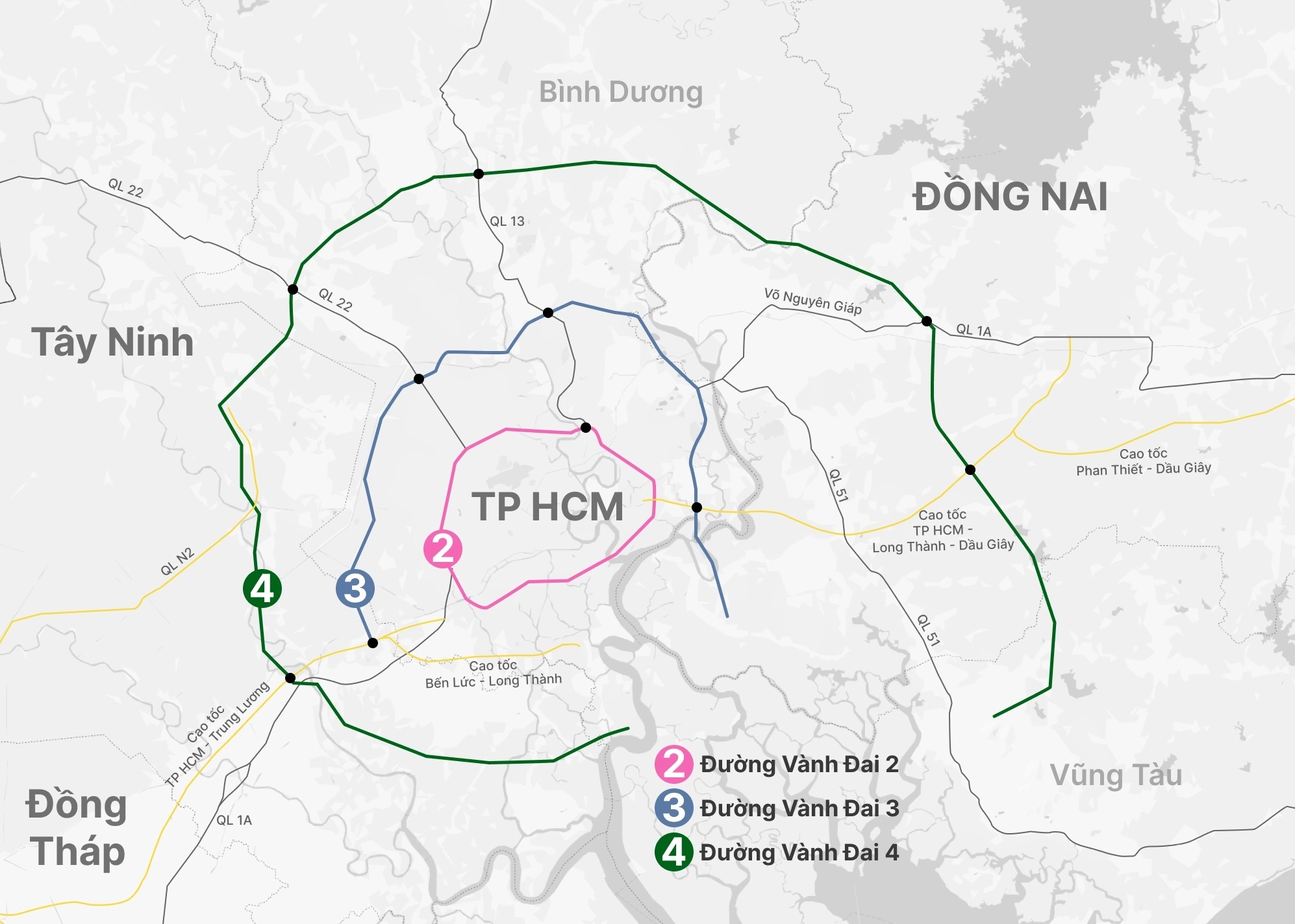The alignment of Ho Chi Minh City's three beltway routes. *Graphic: Hoang Thanh* |