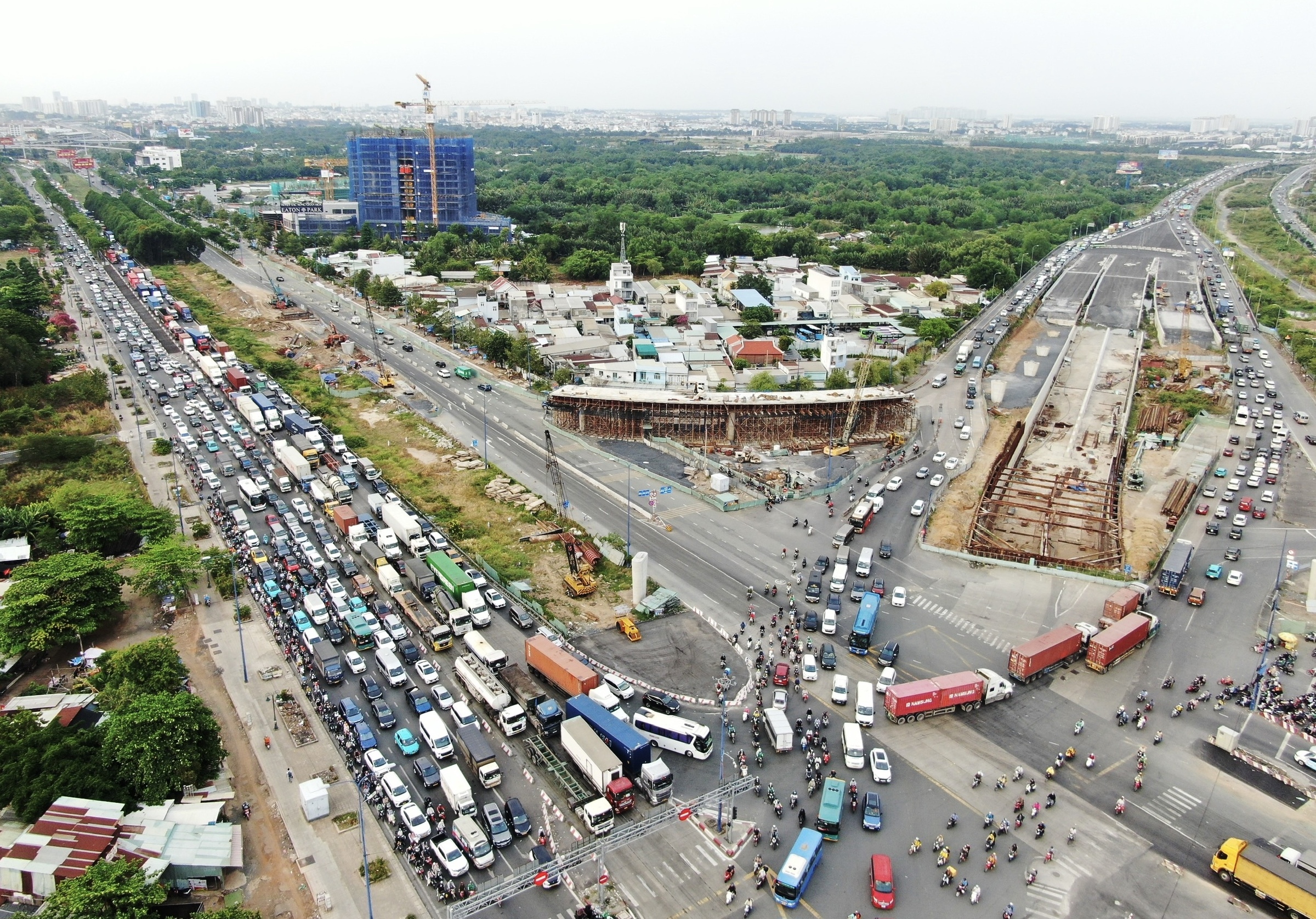 The An Phu intersection at the eastern gateway of Ho Chi Minh City has been under construction for years and is still unfinished. Photo: Giang Anh