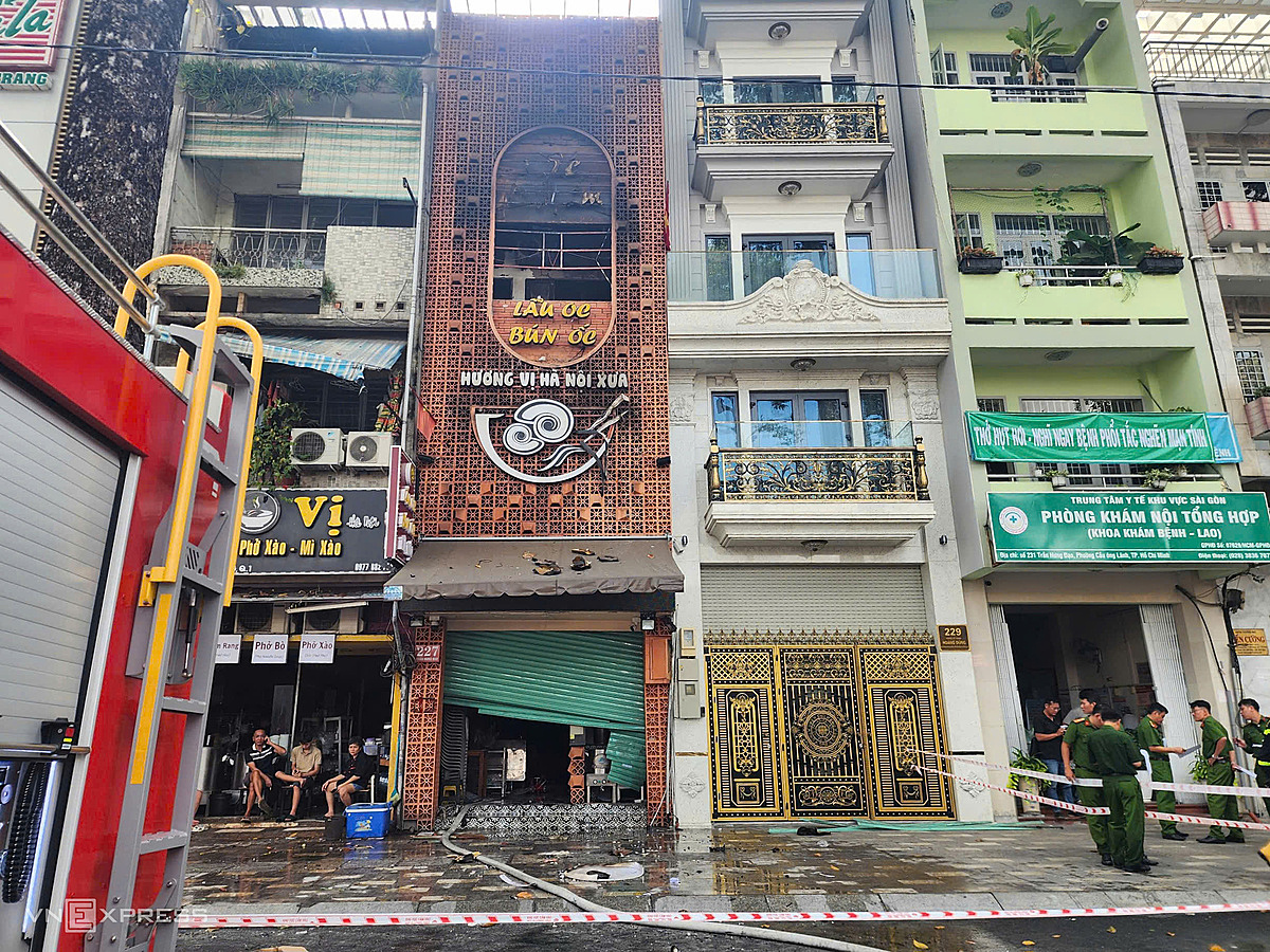 The restaurant fire on Tran Hung Dao street, Cau Ong Lanh ward, had its facade completely blocked by decorative bricks and signs, with only one exit through the main door. Anh: Dinh Van |