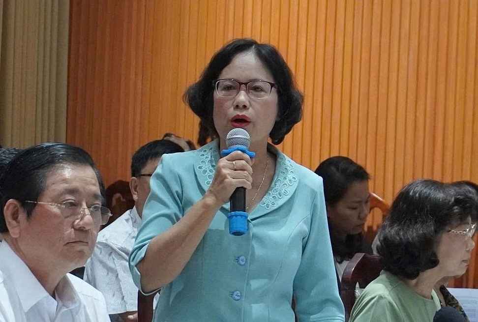 Ung Thi Xuan Huong, Chairwoman of the Democracy - Law Consulting Council (Vietnam Fatherland Front Committee of Ho Chi Minh City), at the conference. Photo: Ha Giang