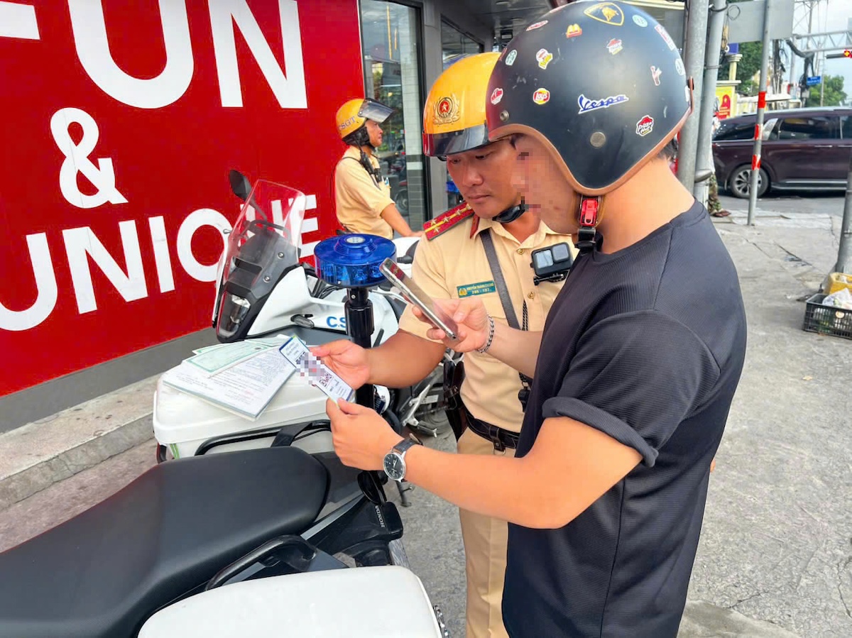 For fines up to 500,000 VND for individuals and one million VND for organizations, where no additional penalties like license suspension or vehicle impoundment are involved, officers will issue a penalty decision without a formal written report. Violators can then scan the provided QR code with their phones, transfer the fine amount to the Ho Chi Minh City Police Department's account, and receive a payment receipt.