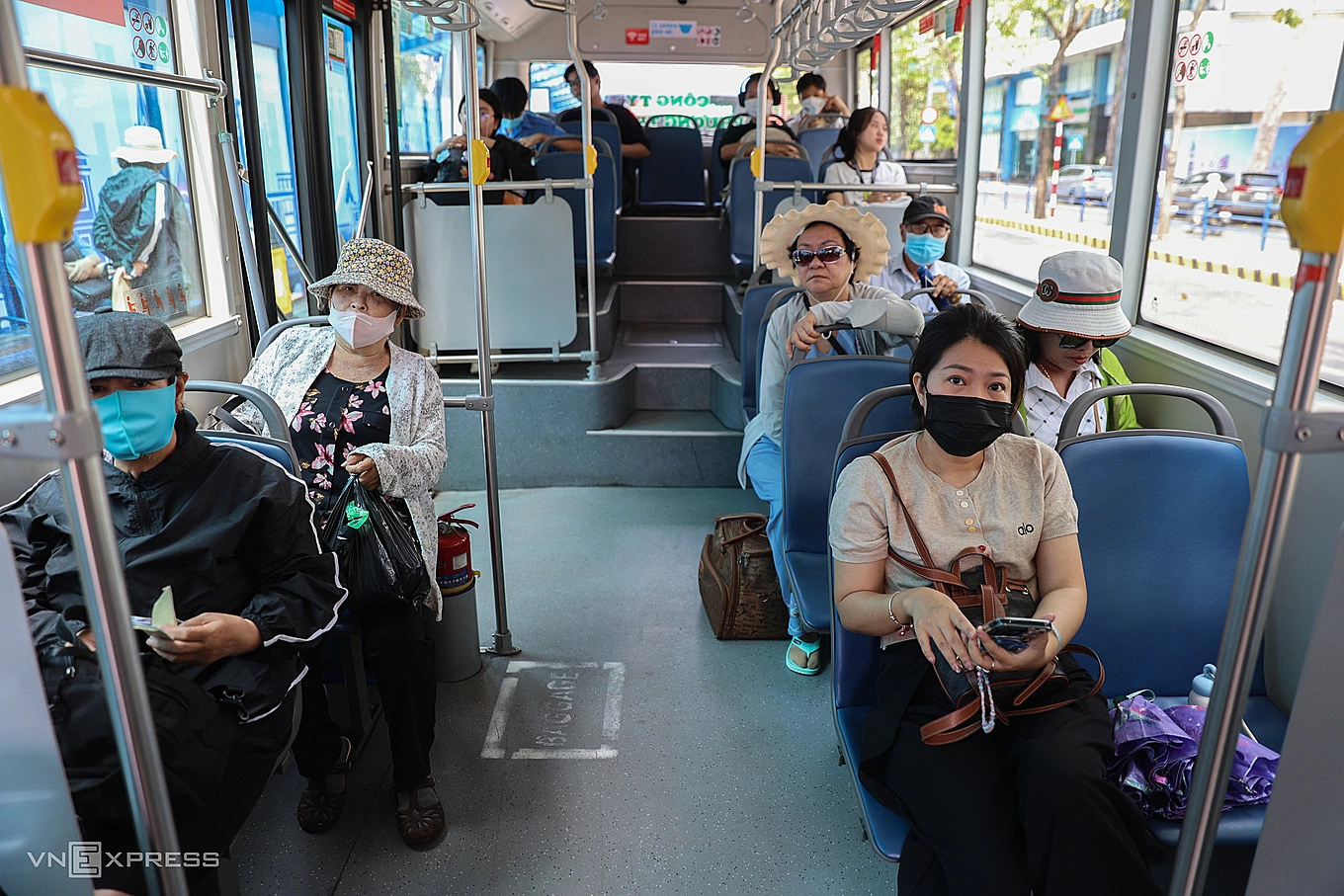 Passengers riding an electric bus in Ho Chi Minh City, 4/2026. Photo: Quynh Tran |