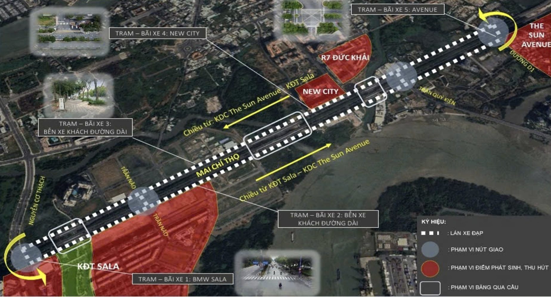 "Upon completion, the Mai Chi Tho bicycle network will connect residential areas, parks, and entertainment venues like Sala, New City, and The Sun Avenue with the Ben Thanh - Suoi Tien Metro Line," Tan said.