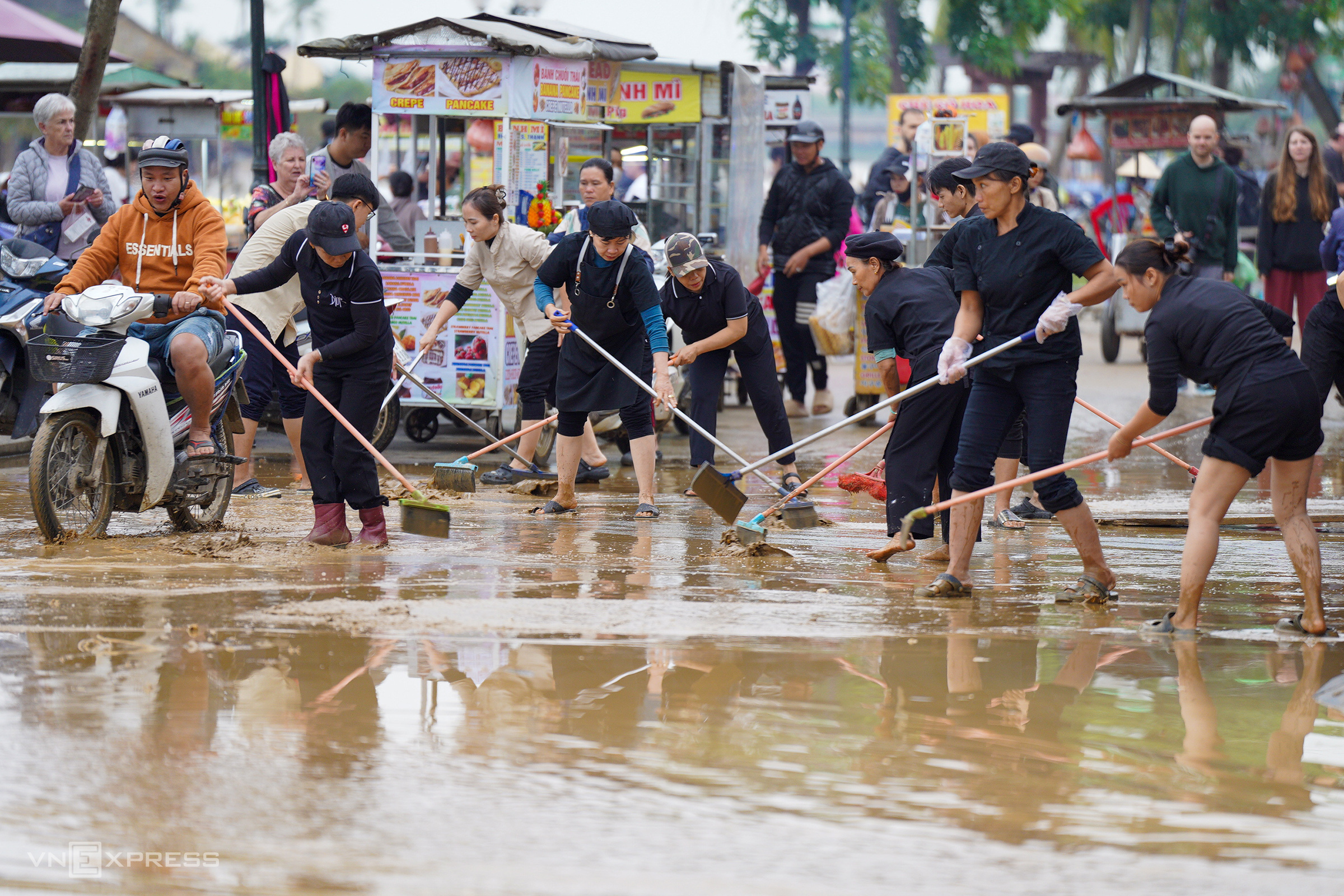 Many businesses mobilized all their staff to clear mud inside their premises and on the streets, assisting environmental workers to quickly restore the road surfaces and resume tourism. |