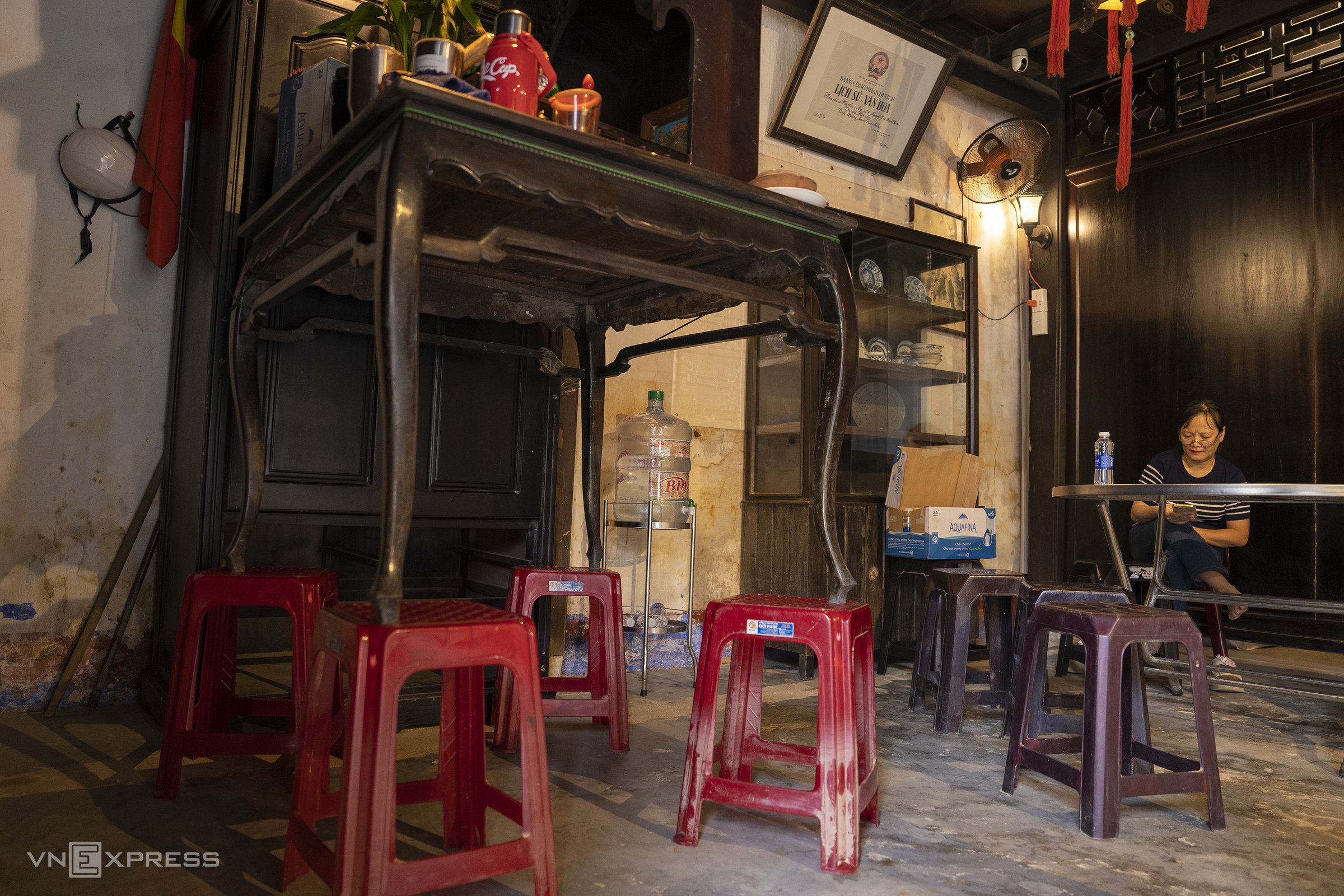 On the second floor of this ancient house, many tables and chairs were moved up to avoid flooding. Some sets of tables and chairs, damaged during the flood 20 days prior, were cordoned off with warnings to tourists to ensure safety.