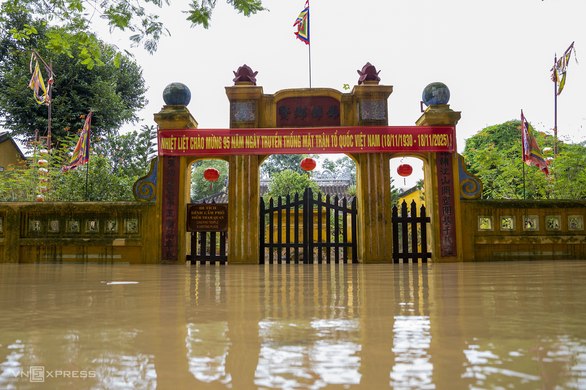 Inside the more than 500-year-old Cam Pho ancient communal house, floodwaters surrounded it on all sides. Many trees, submerged through successive floods, had yellowed leaves or even died from waterlogging.