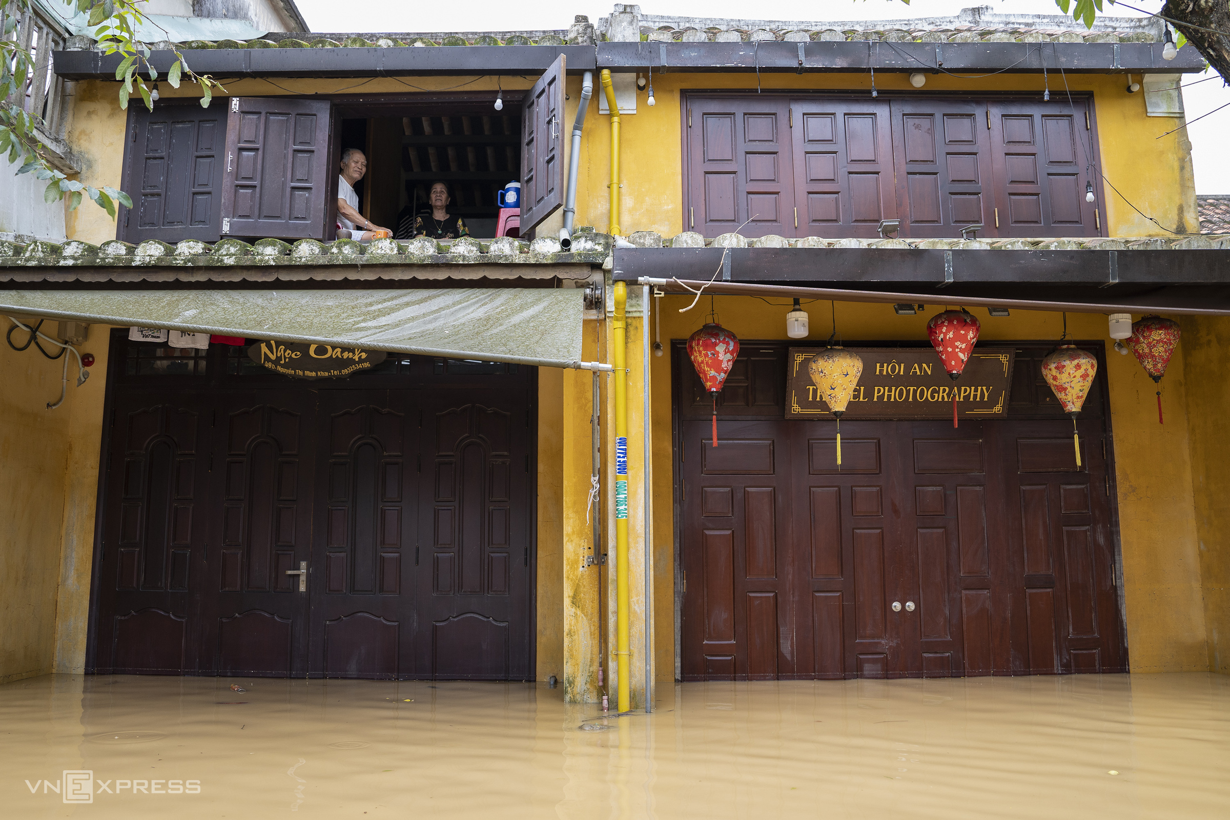Floodwaters surrounded Hoi An ancient town and its neighboring areas. Streets along the river, such as Bach Dang, Ton Nu Ngoc Hoa, and Nguyen Phuc Chu, were submerged by 1.2-1.5 m, with many inner streets also under 0.8-1 m of water.