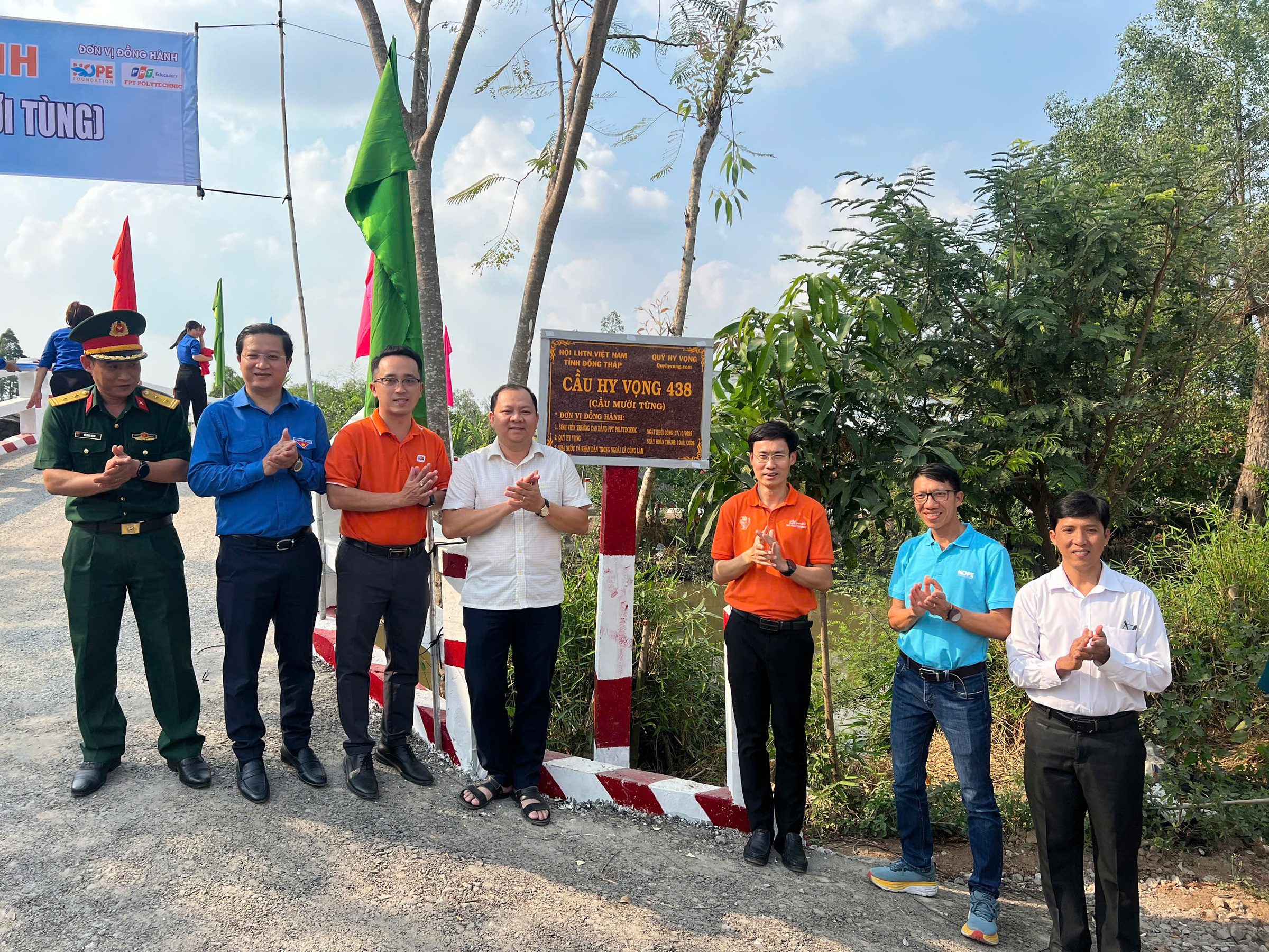 Bridge construction is an activity under the "Helping Children Go to School" program, implemented by the Hope Foundation since 2018. To date, hundreds of Hope Bridges have been built in Can Tho, An Giang, Dong Thap, replacing temporary, dilapidated bridges, contributing to improving the transportation system and boosting the local economy.