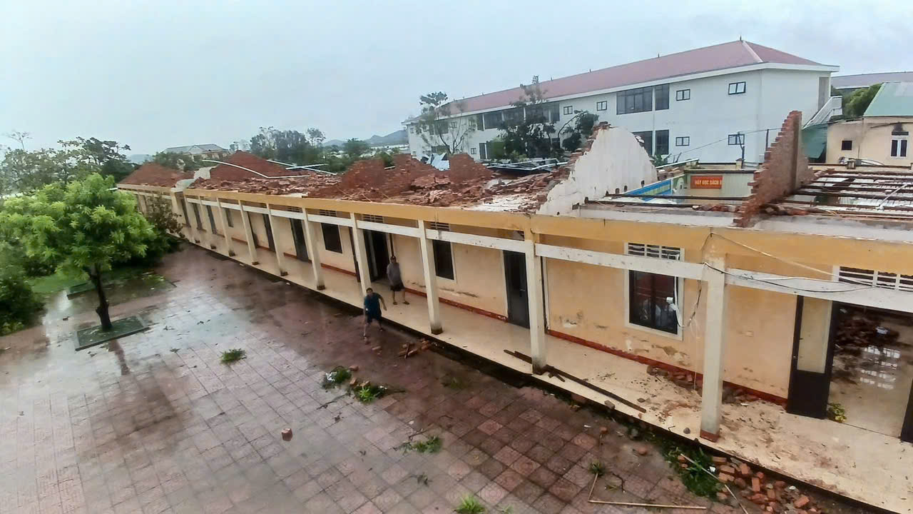 A school in Ha Tinh had its roof blown off. Photo: Duc Hung |