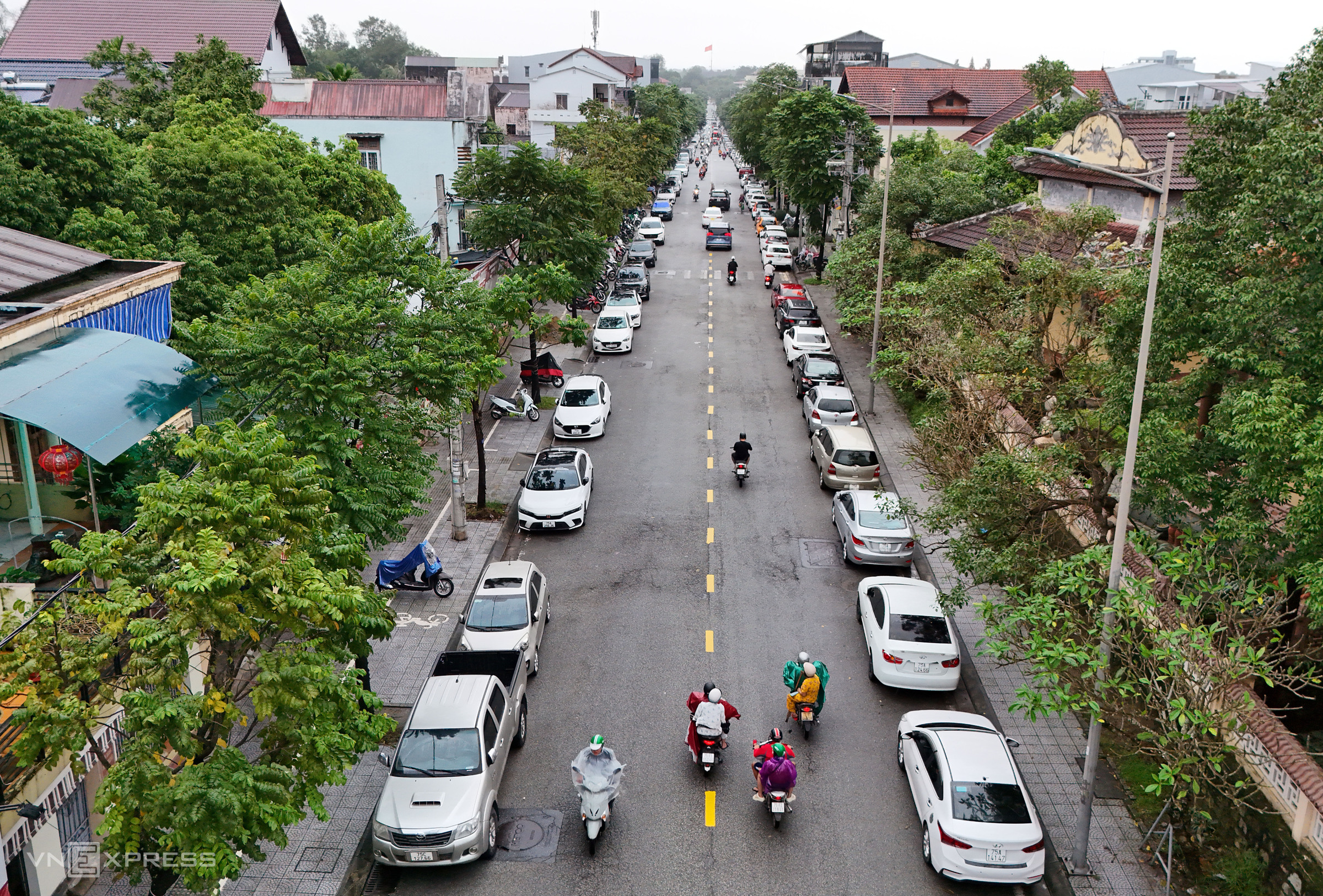 Dien Bien Phu street in Thuan Hoa ward, located on elevated terrain, saw hundreds of cars parked bumper-to-bumper along both sides. |