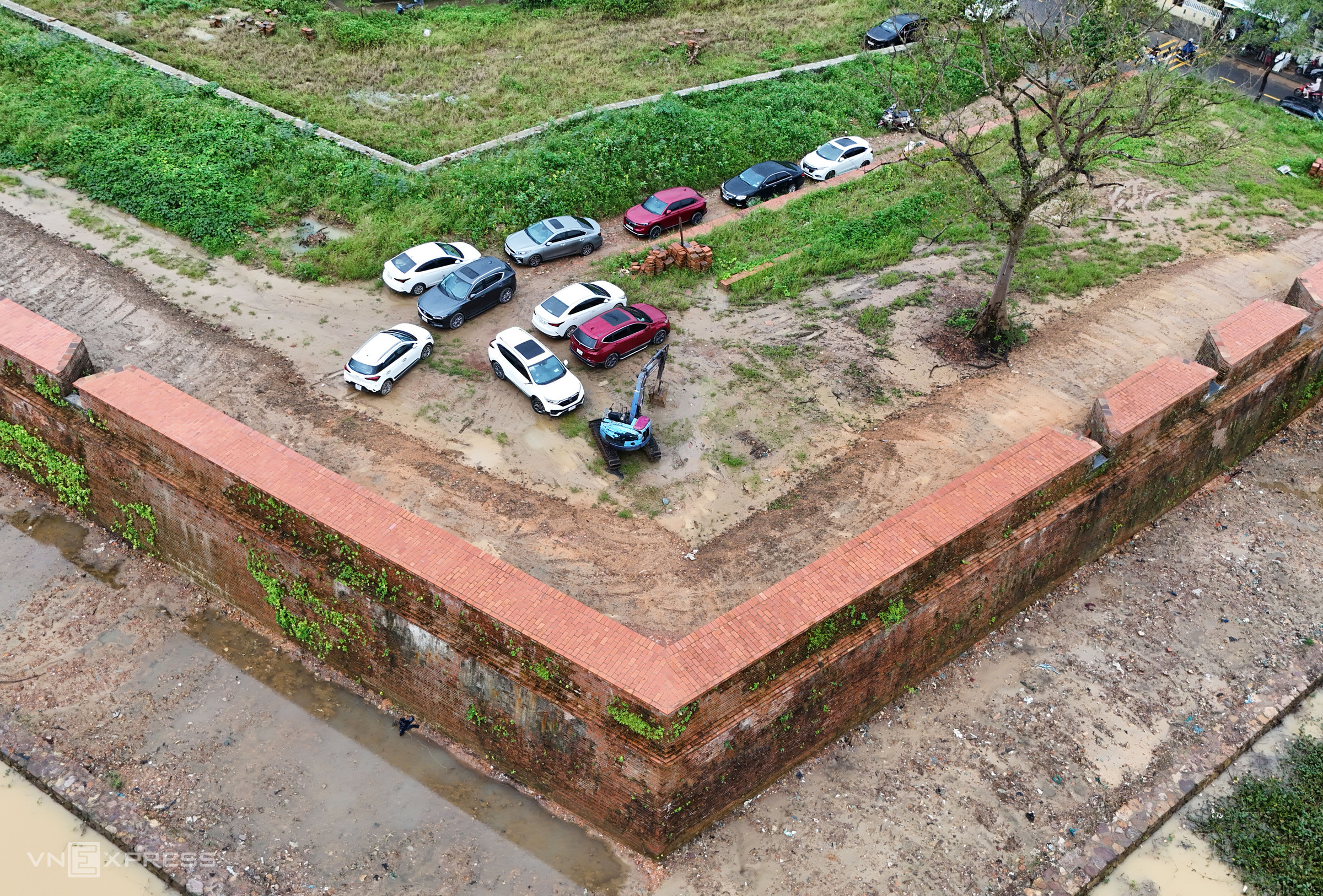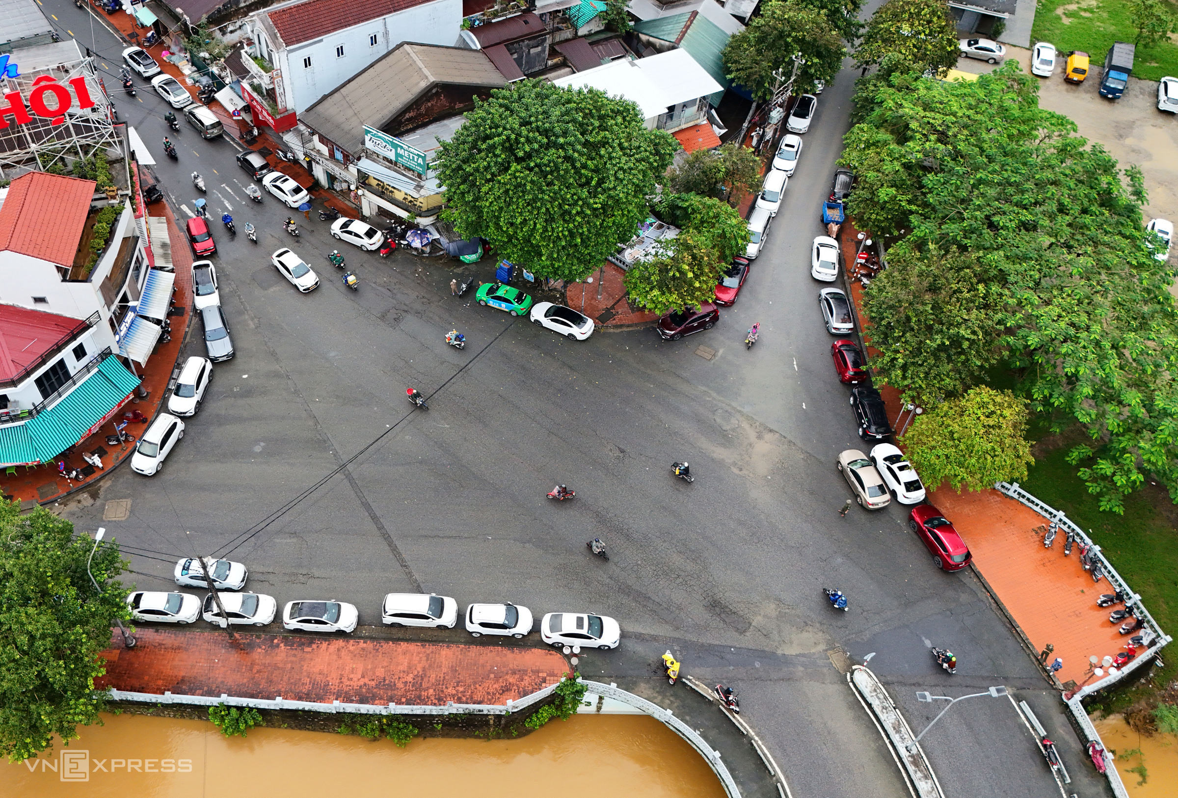 While floodwaters had not yet entered the Imperial City of Hue, many residents living there moved their cars to the Eo Bau area to avoid potential flooding. In the previous flood, many avoided their vehicles being submerged by parking there. |
