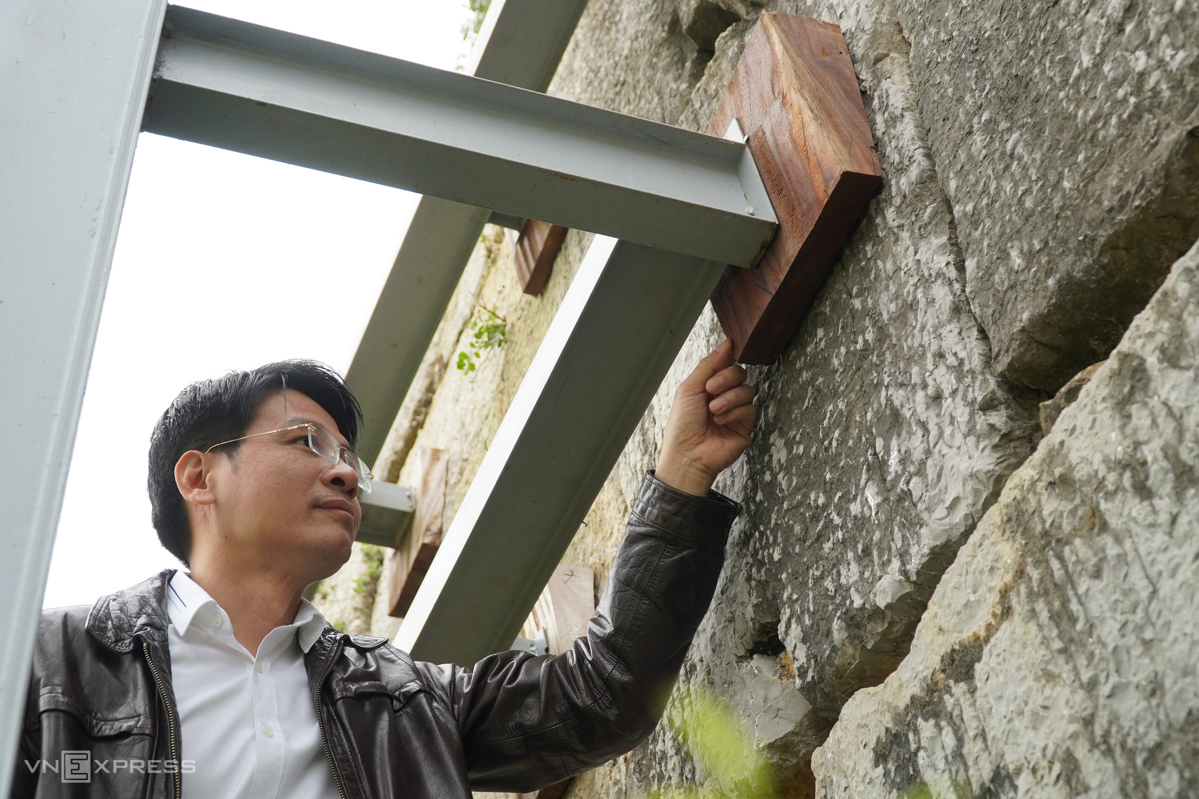 At the contact points between the supporting iron frames and individual stone slabs, the construction unit added lim wood pieces to create elasticity, reduce friction, and prevent direct impact of steel on the surface of the ancient artifacts.