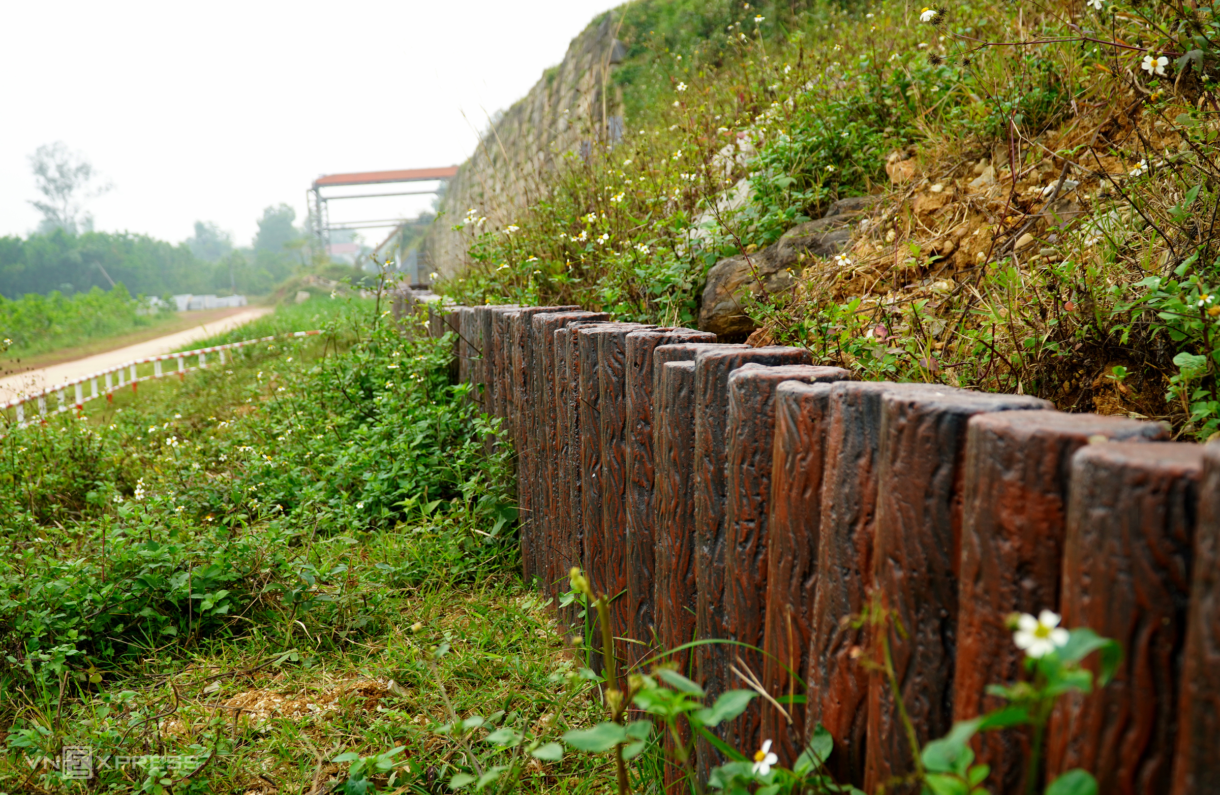 The construction unit also drove reinforced concrete piles, painted to resemble wood, to reinforce some weak sections of the wall base, applying a waterproof layer and creating drainage channels. |