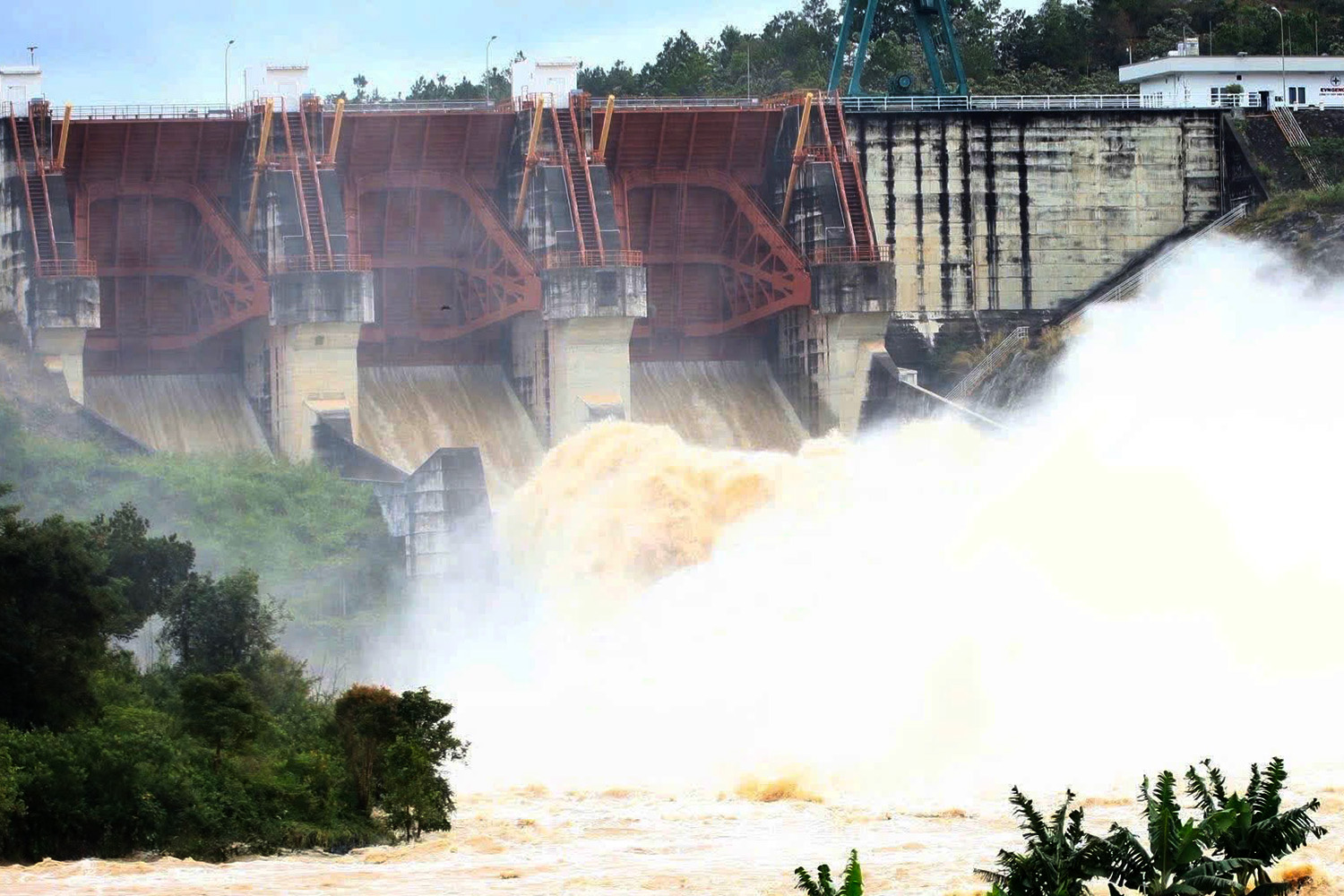 Dai Ninh reservoir discharging floodwaters on 20/11. _Khanh Huong_. |