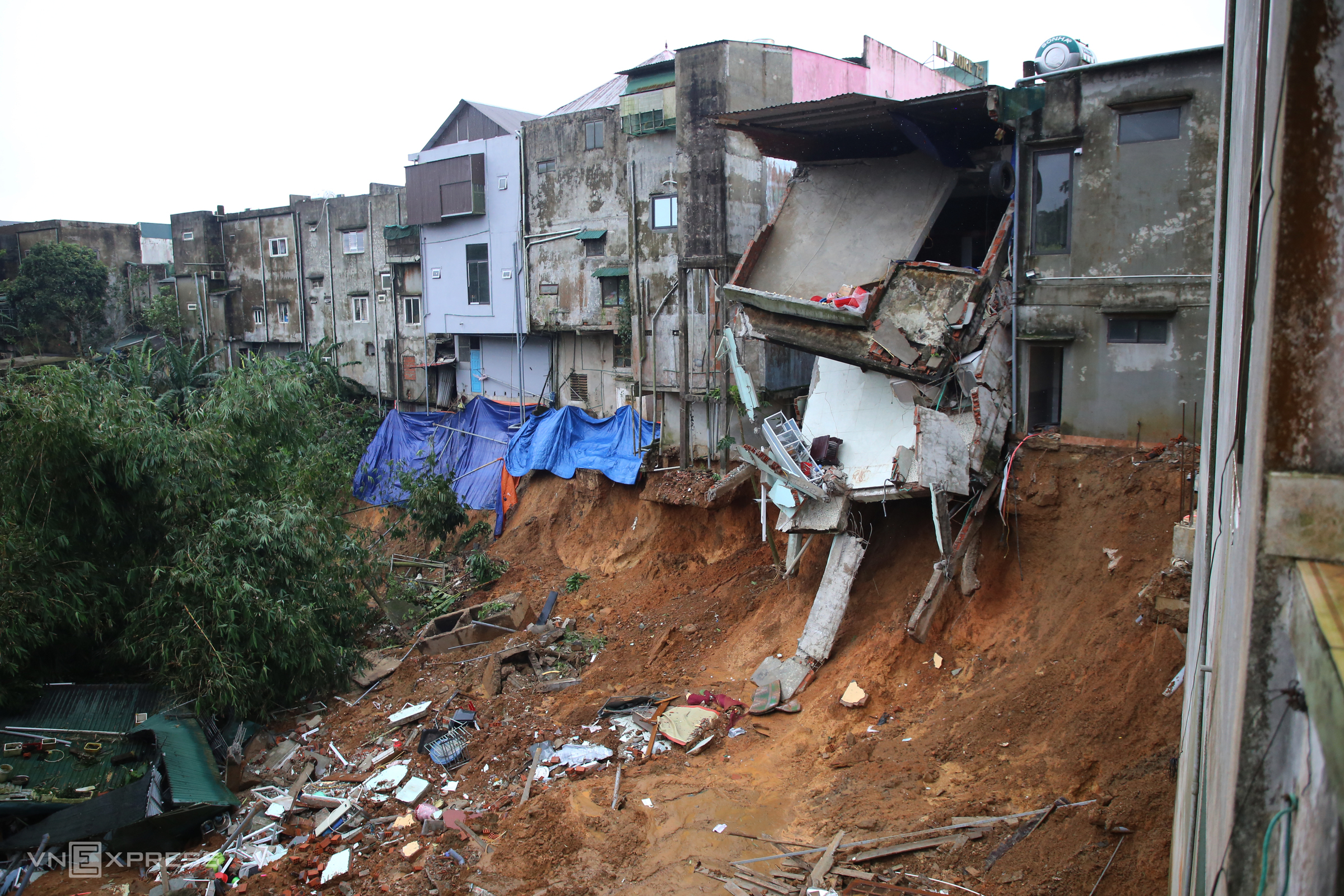 Ten houses are on Hung Vuong street, and one guesthouse is on Le Duan street, all backing onto a deep ravine. After the landslide, authorities cordoned off the dangerous area. Most residents had built sturdy, multi-story, adjacent homes, using the first floor for business and the upper floors for living.