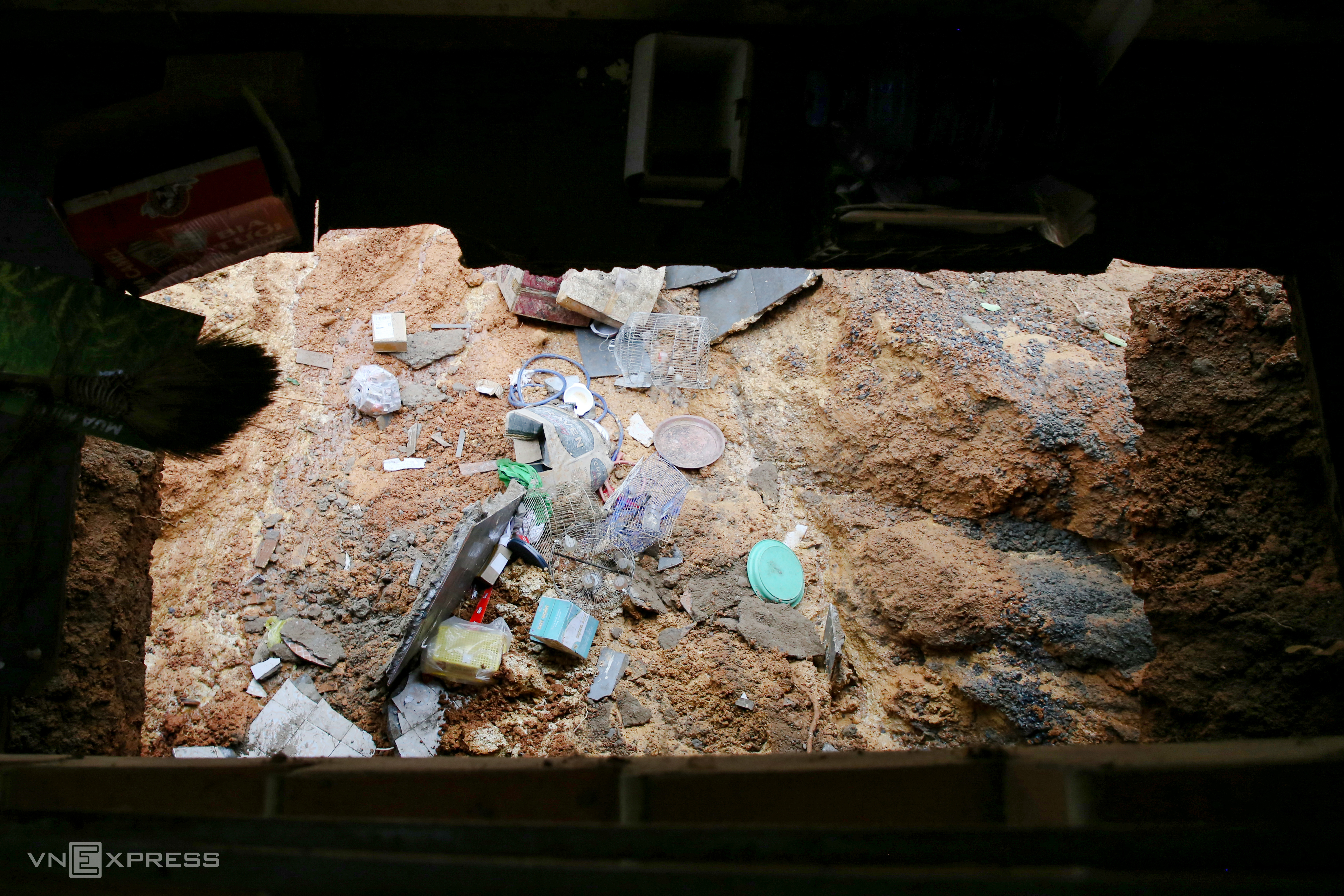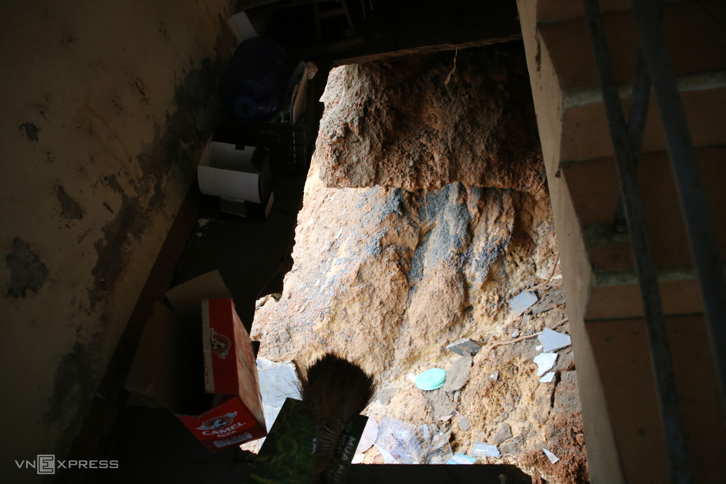 Nguyen Quoc Huy stated that his wife was at the front of their house when the landslide occurred. The rear part suddenly collapsed, sweeping away a refrigerator, television, and other belongings into the mud. Having lived there for 8 years, he said this was his first time witnessing such a landslide.