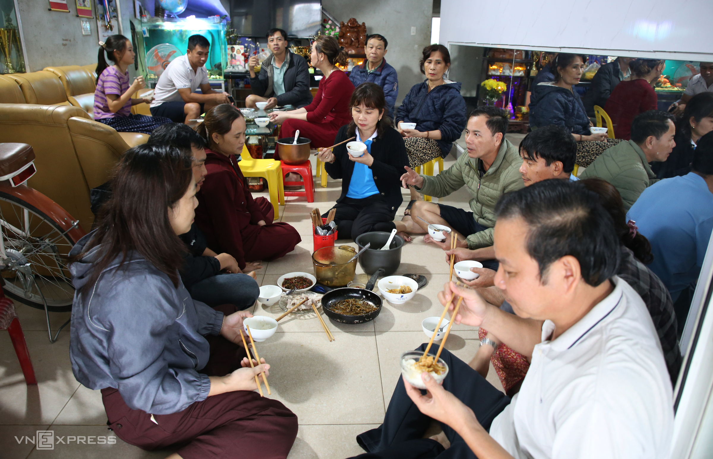 Khe Sanh commune authorities provided a disused office building, available after a recent merger, as temporary shelter for residents. At noon on 18/11, neighbors cooked meals for the affected households, who gathered to eat together.