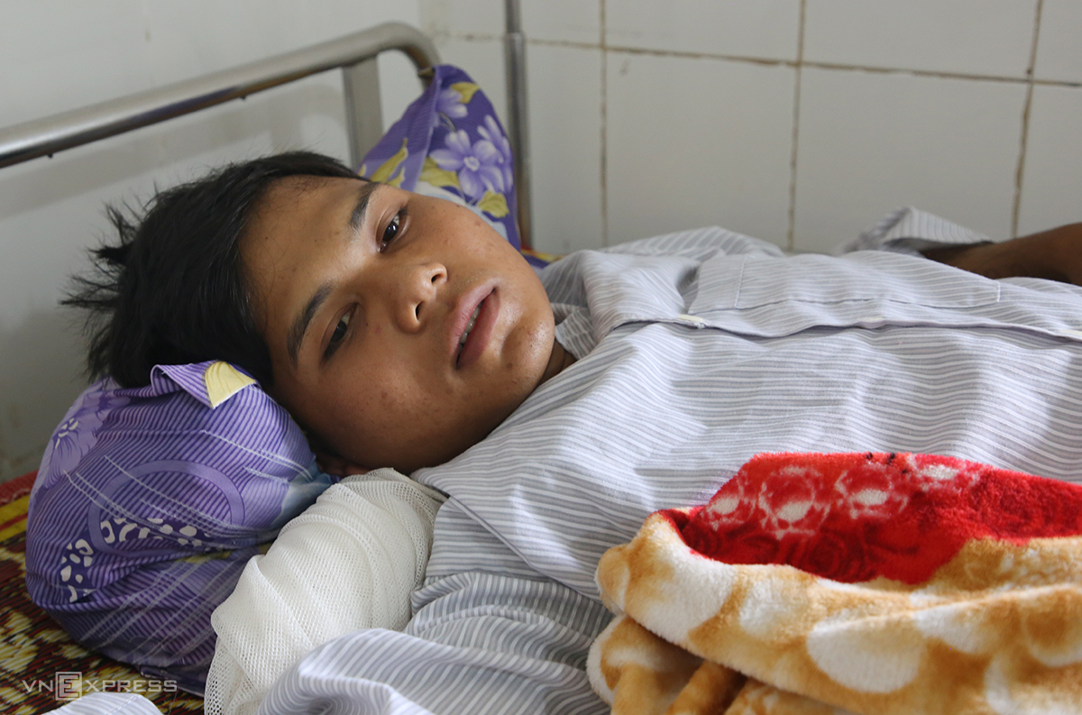 Ho Van Phan is being treated for chest injuries at Huong Hoa Regional General Hospital. Photo: Dac Thanh