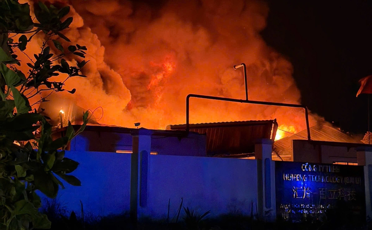 Around 8:30 PM, a fire broke out at the production workshop of Huifeng Technology (Baili) Co., Ltd., a paint manufacturer, located in Long Nguyen ward, Ben Cat City, Binh Duong.