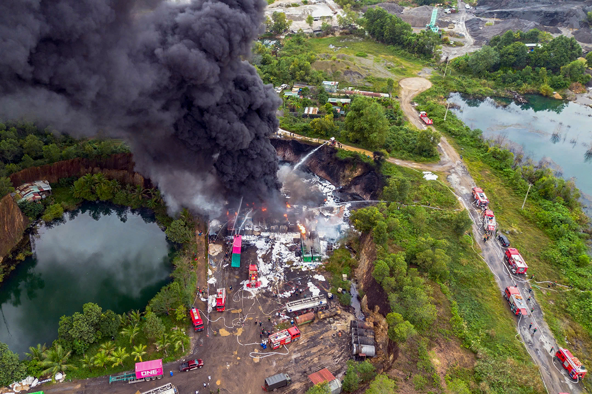 The flames quickly spread to an area storing gasoline and oil near mineral mining sites, causing the blaze to intensify and spread rapidly. Local forces attempted to extinguish it but were unsuccessful.