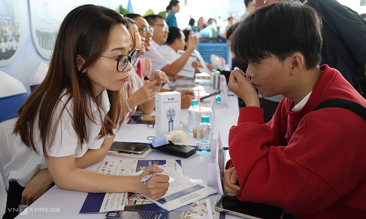 Young people receive career advice at Long Thanh Airport during a job fair on 23/8. Photo: Phuoc Tuan