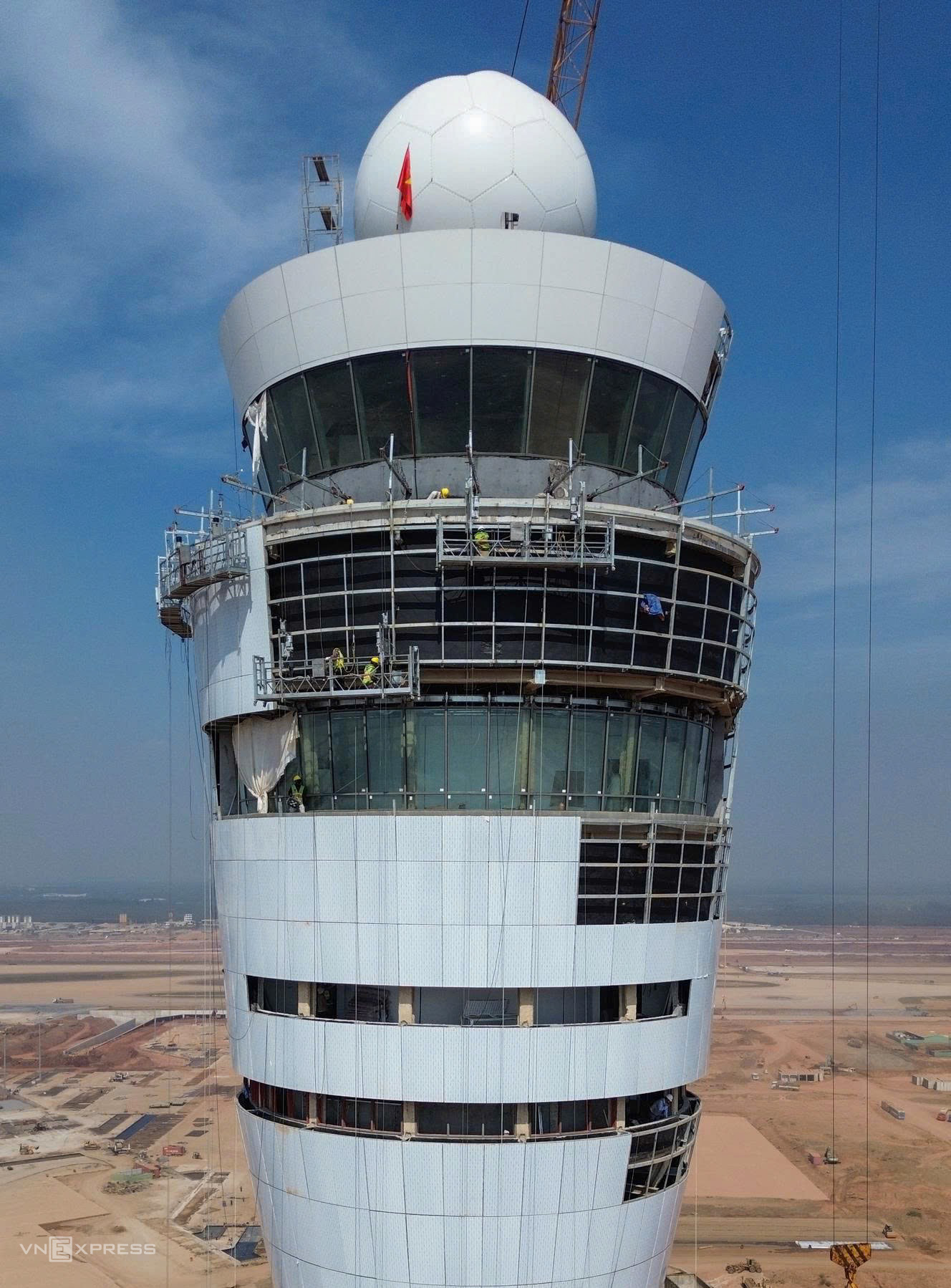 Nearby, the air traffic control tower and its auxiliary facilities, with a total investment of 3,500 billion VND, have largely completed their construction. The tower’s design, resembling a lotus bud, harmonizes in color and architecture with the passenger terminal. Standing 123 m tall with a radar installed at its peak, the tower has a construction area of about 80 square meters and a shaft diameter of 10 m.
