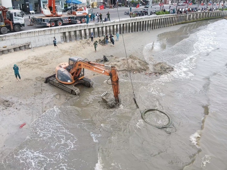 Previously, the unit surveyed the area, established a protective zone, and inspected and handled explosive materials before finalizing the plan. The estimated cost is 200-300 million VND, with the duration dependent on tidal conditions.