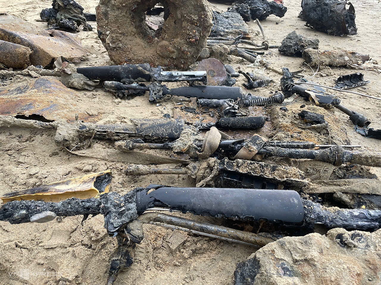 Within the sand layers surrounding the tank, authorities found numerous artillery pieces, guns, bones, and artifacts. After nearly two hours of digging several meters deep and removing a large amount of sand, the armored vehicle remained unmoved.
