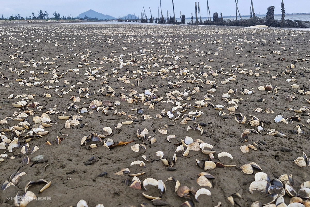 In previous years, farmed clams in the coastal mudflats of Mai Lam village, Mai Phu commune, also experienced multiple mass mortality events, with losses ranging from tens to hundreds of tons. Expert agencies concluded that these incidents were caused by factors such as frost and freshwater intrusion into the seawater.