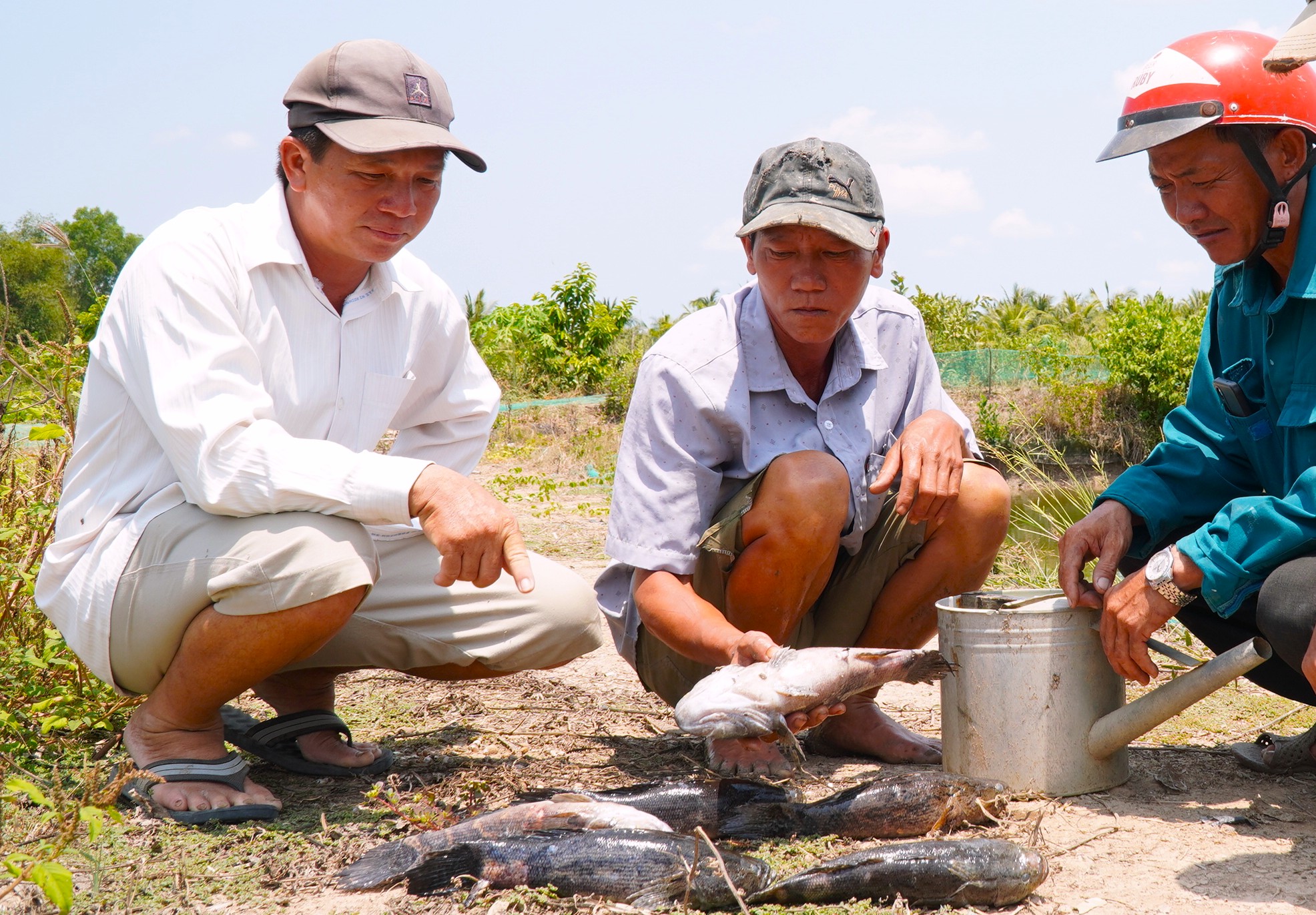 Khom 3 and 4 are primary agricultural and aquaculture production zones in Tan Thanh Ward. During the peak dry season, saltwater intrusion into canals further complicates water sourcing for fish farming and cultivation. Initial statistics show 83 households are affected.