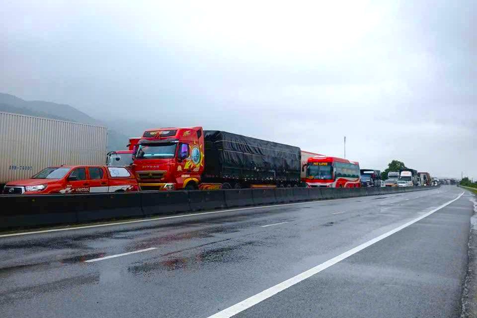 Earlier that morning, many vehicles traveling southbound to northbound on National Highway 1 were forced to stop at the entrance to Deo Ca pass due to heavy flooding in Phu Yen, causing traffic congestion stretching for kilometers. Traffic police from Khanh Hoa and Dak Lak provinces coordinated to regulate traffic, preventing too many vehicles from accumulating at one point.