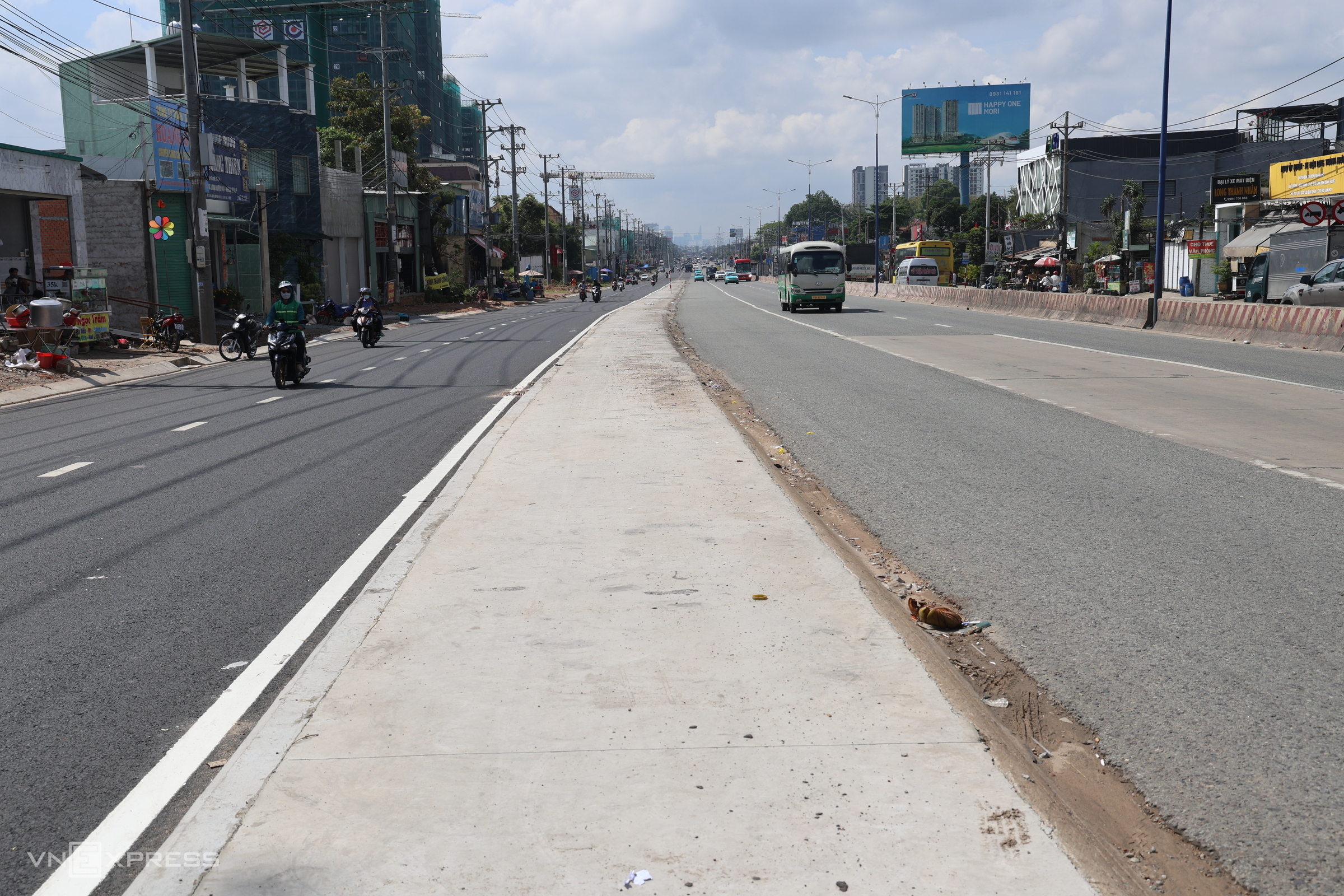 A nearly one km section through Thuan Giao ward uses a hard median to separate cars and motorbikes, aiming to prevent traffic conflicts. This area typically sees high motorbike traffic because it is near major industrial parks such as Viet Hung and VSIP 1.