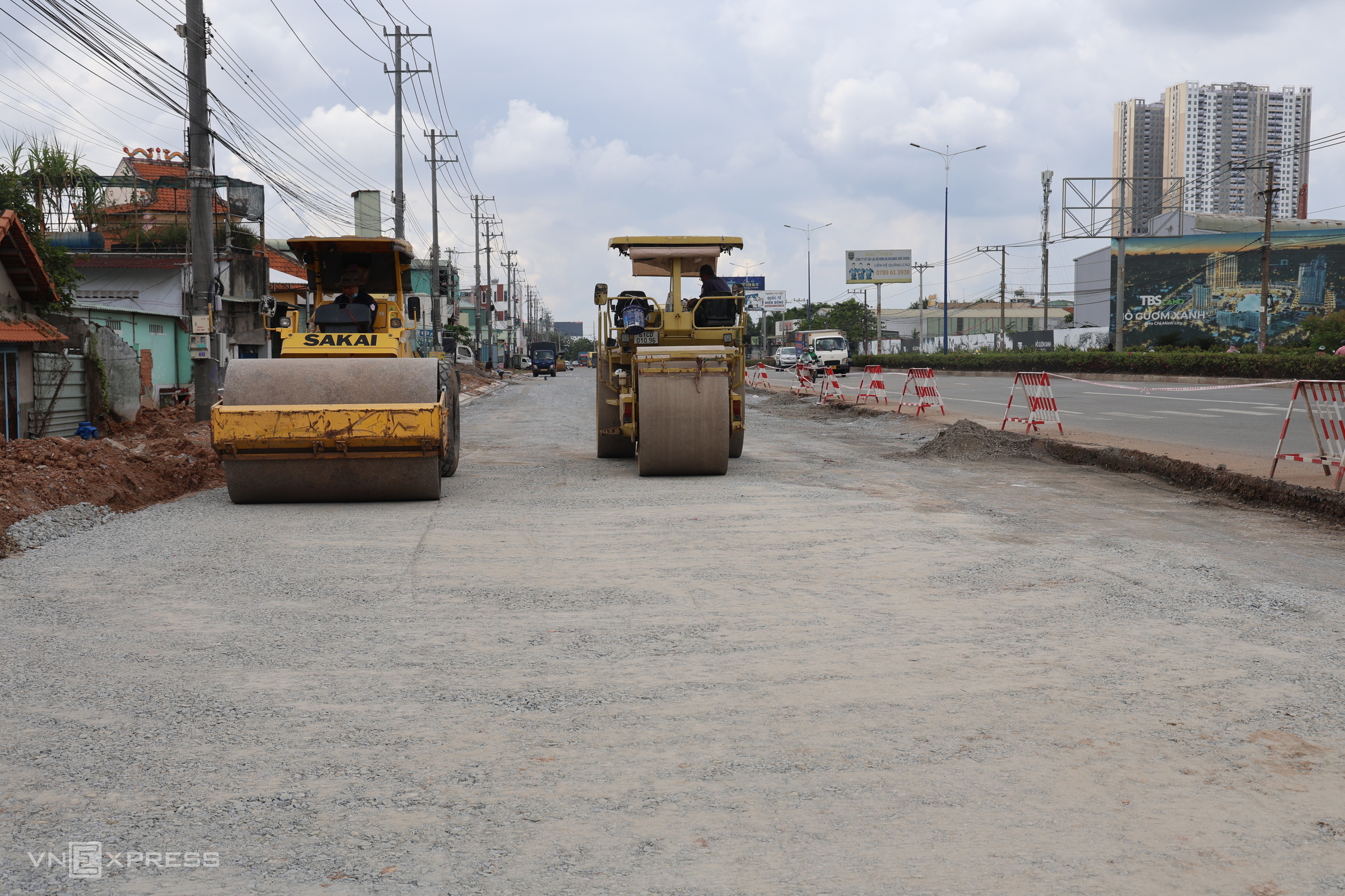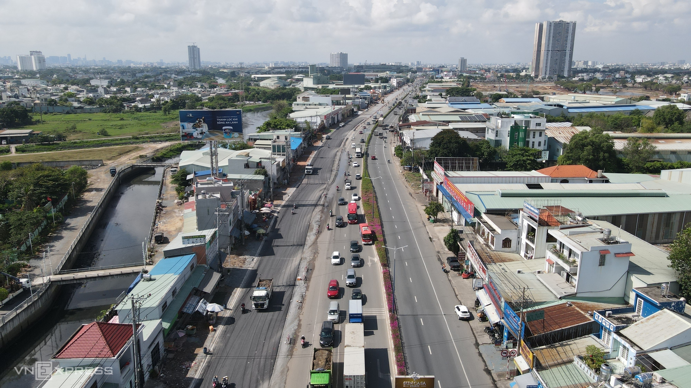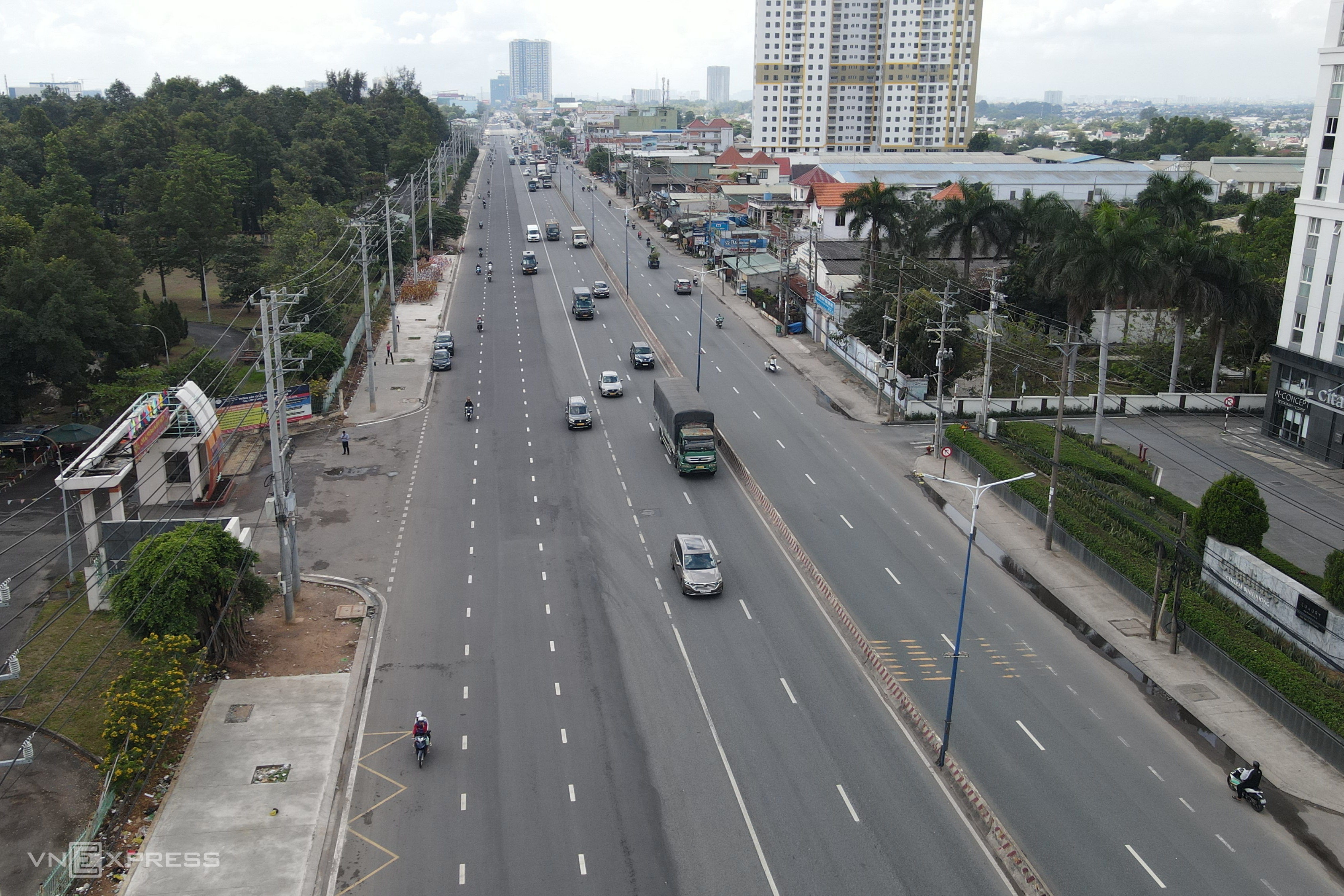 Most of the original median strips and streetlights along the road have not yet been relocated. However, the 9.5 km section from Ong Bo bridge to Le Hong Phong intersection now has road markings, and over 500 m through Binh Hoa ward features a four-lane hard median for traffic heading from Ho Chi Minh City to Dong Nai.
