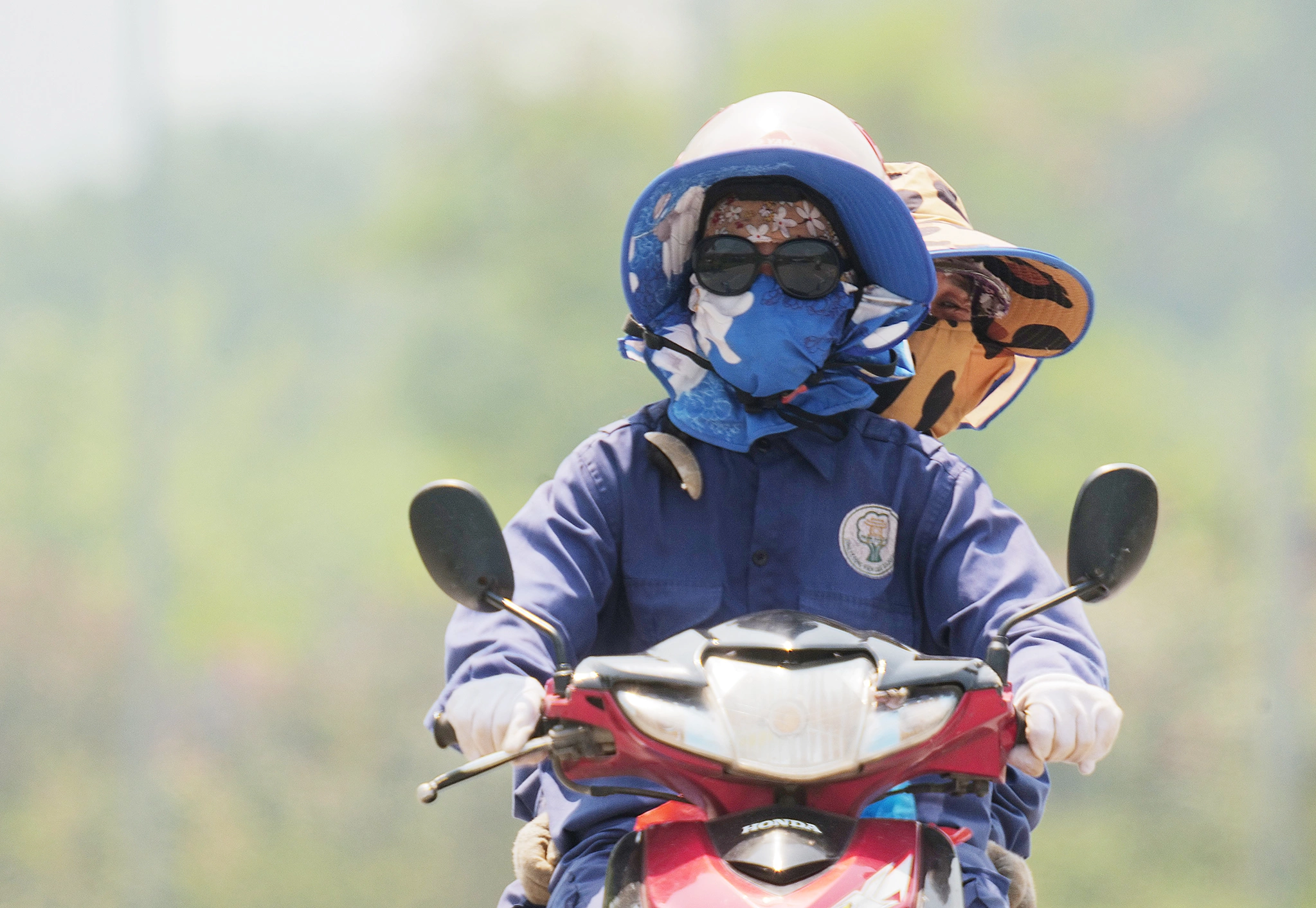 Residents commute on Thang Long Boulevard, Hanoi, during the heatwave. Photo: Ngoc Thanh |