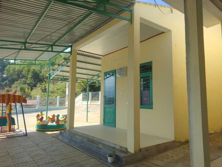 The new multi-purpose hall addresses a long-standing need for the school. Ms. Le Thi Kim Oanh, Principal of Phuoc Chanh Kindergarten, explained its benefits: "With the multi-purpose hall, teachers have a place to look after children when parents are away in the fields for extended periods. It also serves as a resting place for teachers during lunch breaks when students go home, as the school does not yet offer a full-day program."