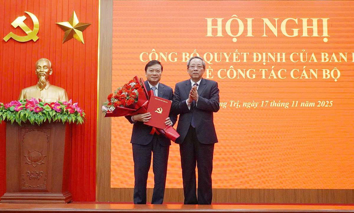 The transfer decision was announced at noon on 17/11 at the Quang Tri Provincial Party Committee headquarters. Hoang Dang Quang, deputy head of the Central Organization Commission, expressed confidence that Vinh would leverage his capabilities and responsibilities, working alongside the Quang Tri Provincial Party Committee in its next phase.