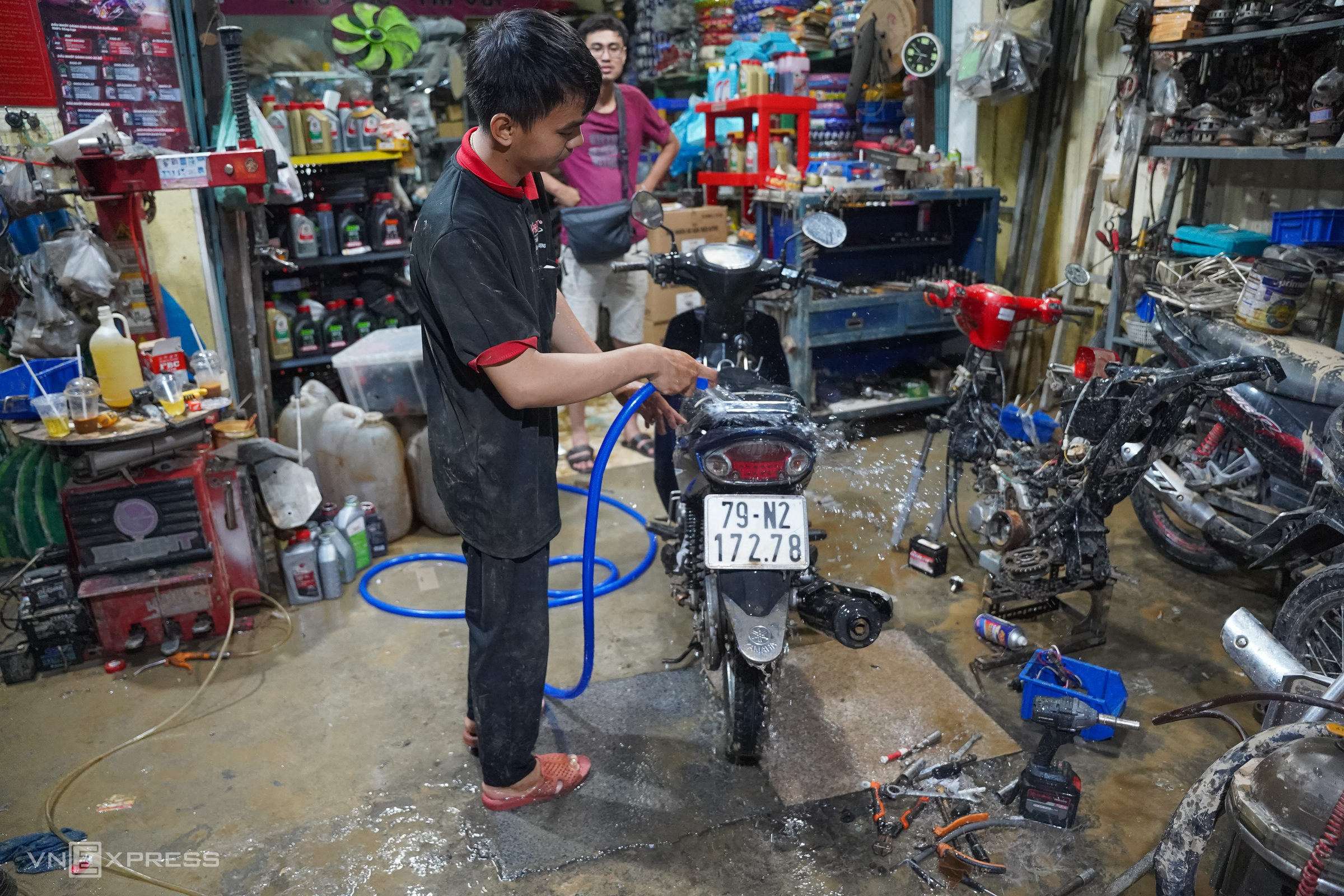 Thach, a repair shop owner, stated that he received 20 vehicles for repair today, more than his team could handle. At times, he had to limit new intake to complete previously brought-in repairs.