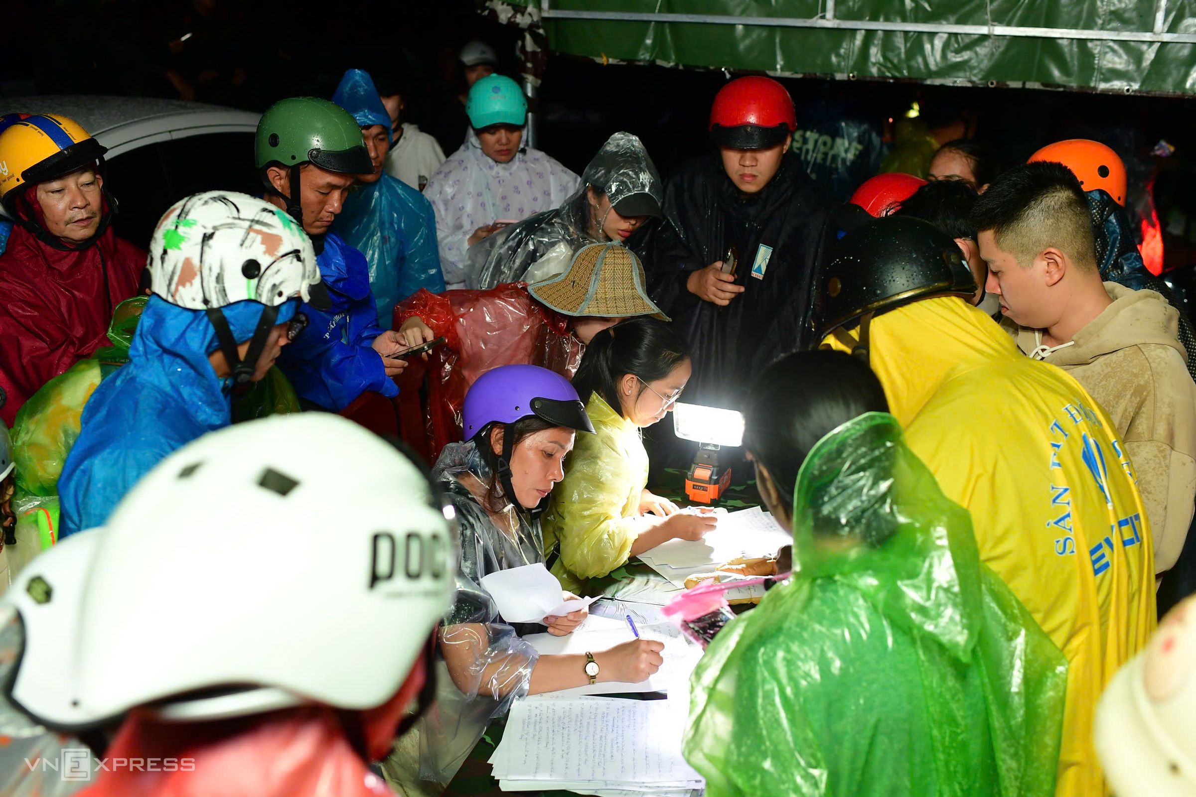 Meanwhile, outside, heavy rain persisted. From early evening, hundreds of Nha Trang residents gathered at two field tents set up by the military at Ngoc Hoi intersection, registering information about relatives still trapped in flooded areas, awaiting rescue teams. Throughout the night, the rain continued, and water levels rose higher in many areas.